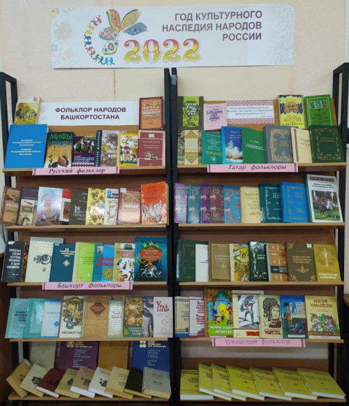 В РАМКАХ ГОДА КУЛЬТУРНОГО НАСЛЕДИЯ РОССИИ БИБЛИОТЕКА ПРЕДСТАВЛЯЕТ КНИЖНУЮ ВЫСТАВКУ «ФОЛЬКЛОР НАРОДОВ БАШКОРТОСТАНА», НА КОТОРОЙ ПРЕДСТАВЛЕНА ЛИТЕРАТУРА ПО УСТНОМУ СЛОВЕСНОМУ И МУЗЫКАЛЬНОМУ НАРОДНОМУ ТВОРЧЕСТВУ.