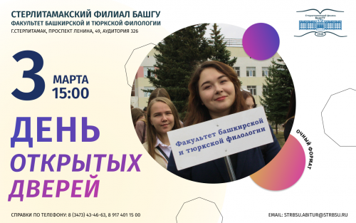 3 марта 2022 г. в 15:00 факультет башкирской и тюркской филологии проведет День открытых дверей в очном формате.