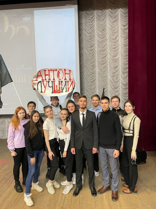 Представляя исторический факультет, он смог буквально поразить уровнем своей подготовки. Взять хотя бы тот факт, что в момент презентации проектов Антон был единственным мистером, кто смог вывести на сцену так много ребят и говорить без подготовленного листочка!