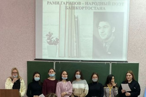 На факультете педагогики и психологии 24 февраля состоялось мероприятие «Час поэзии», приуроченное к юбилею поэта. Студенты группы НДО21 подготовили литературную композицию по творчеству Рами Гарипова. Они рассказали биографию поэта, выразительно прочитали его лирические стихи, в которых красной нитью проходит тема любви к родине, к родному языку, к родной природе.