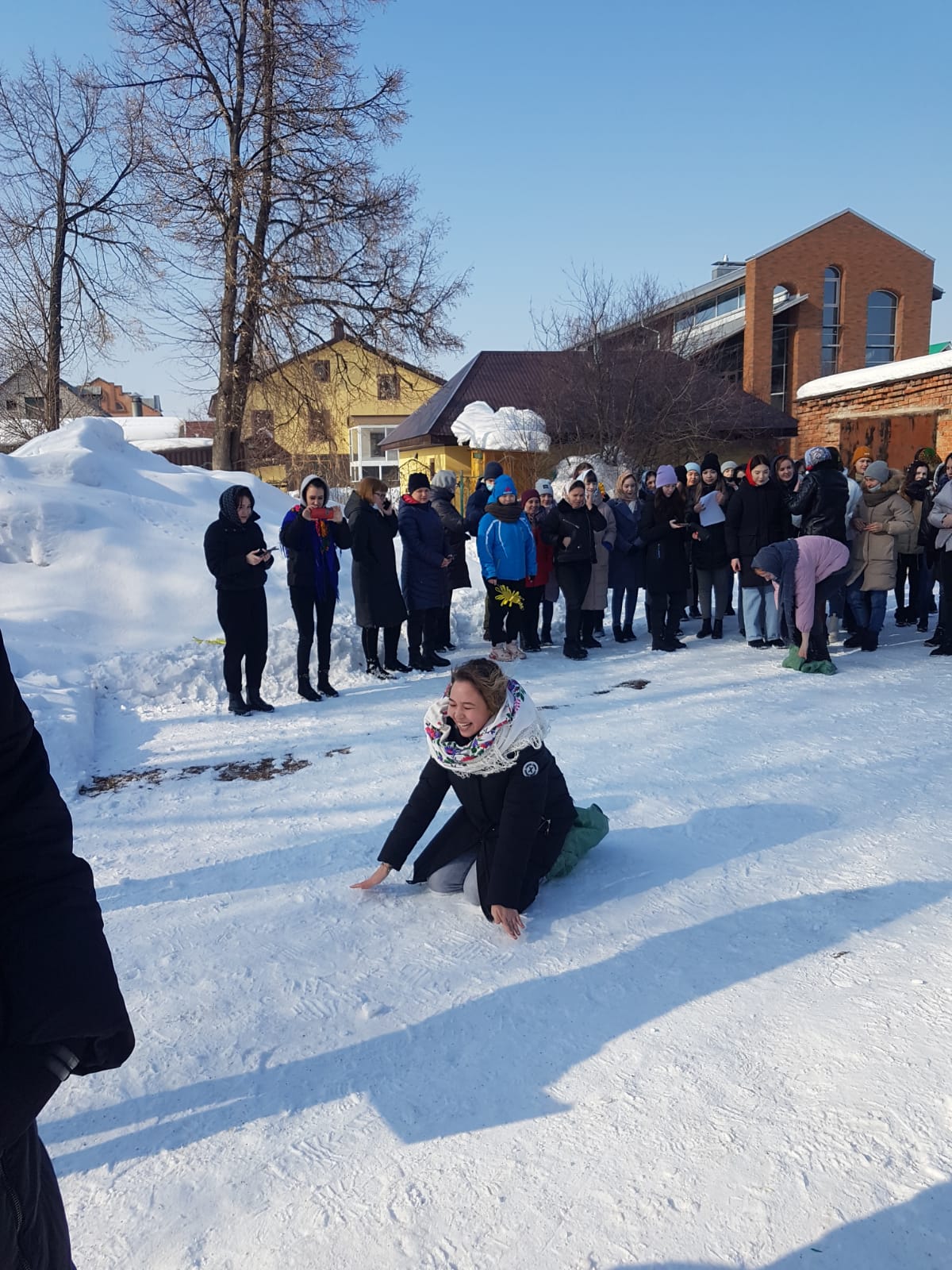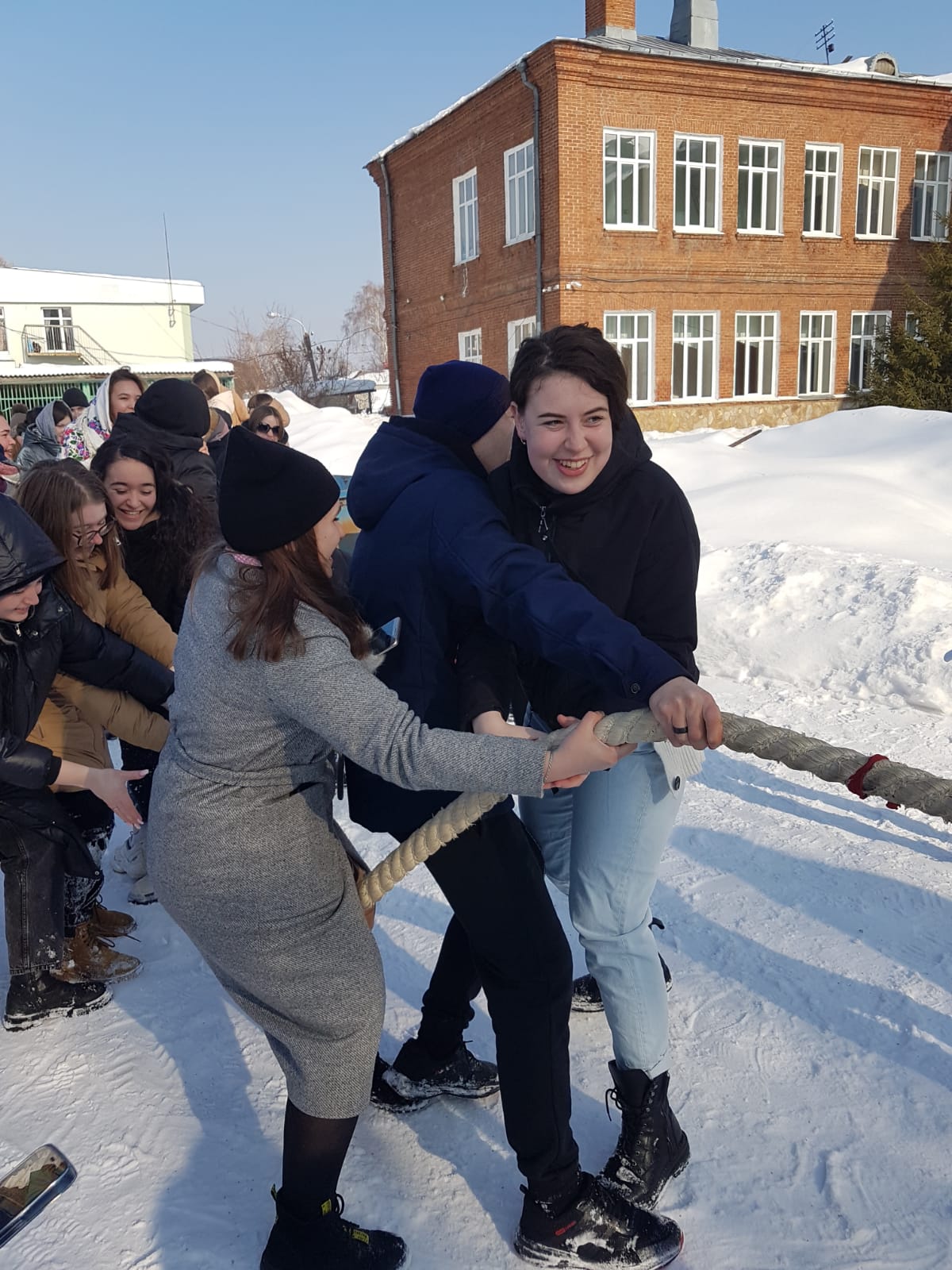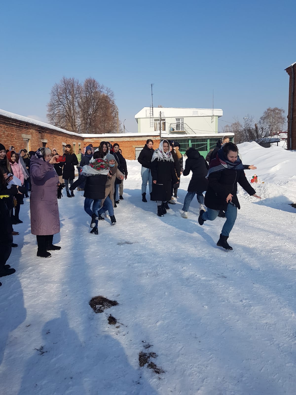 Озорные скоморохи вовлекли студентов и преподавателей в весёлые гуляния и игры: тянуть канаты, бегать в мешках, ловить в «проруби» рыбу, заплетать длинную косу из ленточек, петь, водить хороводы и др. В завершении праздничной программы по многовековой традиции попрощались с чучелом Масленицы, как символ ухода зимы и наступления солнечных весенних дней.