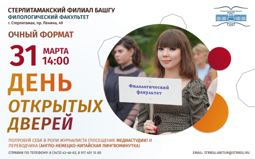 Филологический факультет СФ БашГУ приглашает на День открытых дверей!