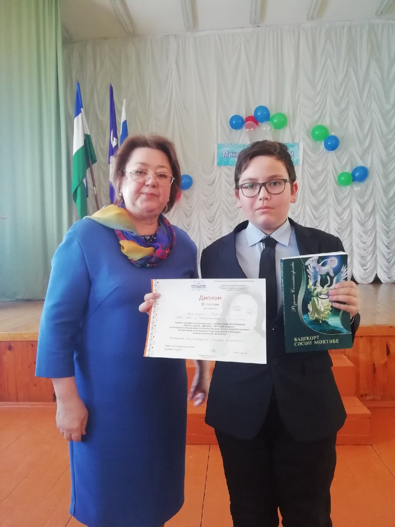 По итогам конкурса победителем среди обучающихся среднего звена стал Сагитов Айтуган Ильгизович, обучающийся 5 кл. МБОУ СОШ с. Максютово МР Кугарчинский район, руководитель - Юмакаева Илуза Юмагуловна; среди участников старшего звена победу одержала Кидрасова Илюза Юлаевна, обучающаяся 11 кл. МБОУ Башкирская гимназия с.Мраково МР Кугарчинский район, руководитель - Псянчина Зиля Махмутовна.
