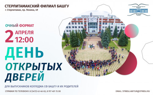 Стерлитамакский филиал БашГУ проведет день открытых дверей для выпускников колледжа СФ БашГУ и их родителей!