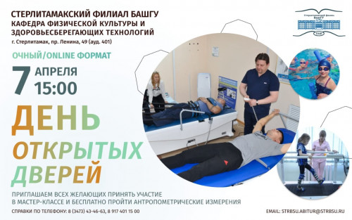 Если у вас нет возможности присутствовать на дне открытых дверей очно, то вы можете посмотреть его онлайн. Прямая трансляция будет проходить в официальной группе Стерлитамакского филиала БашГУ (vk.com/sfbashgu) 7 апреля 2022 г. в 15:00.