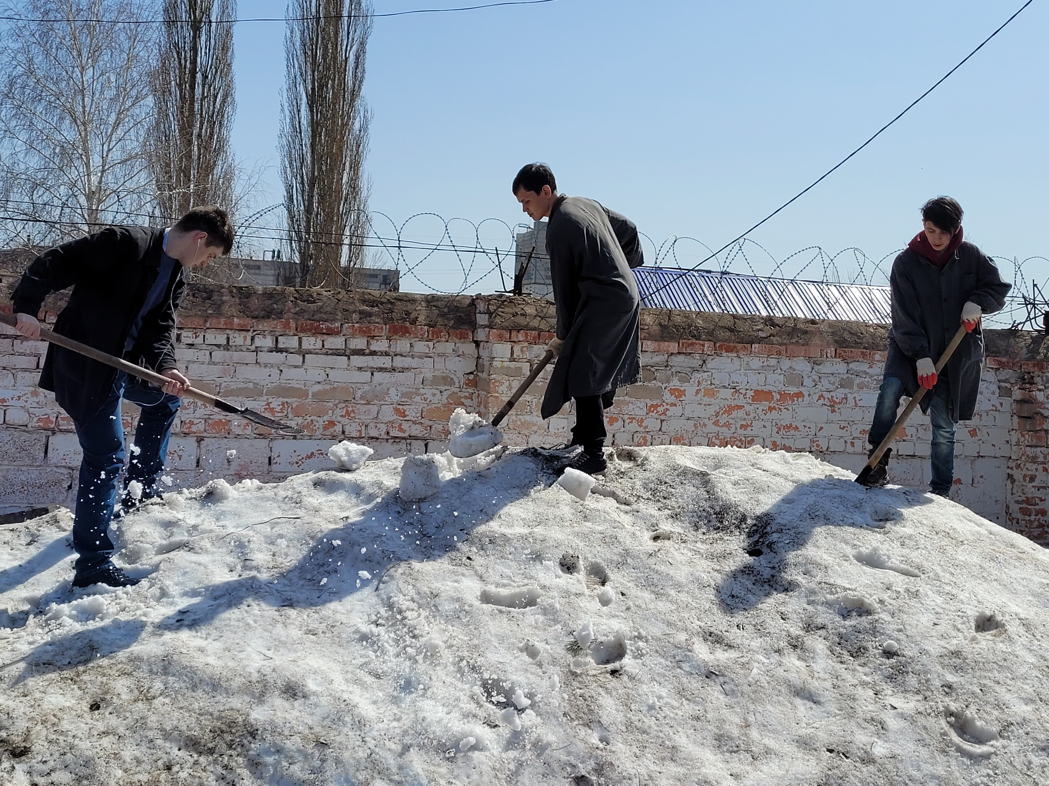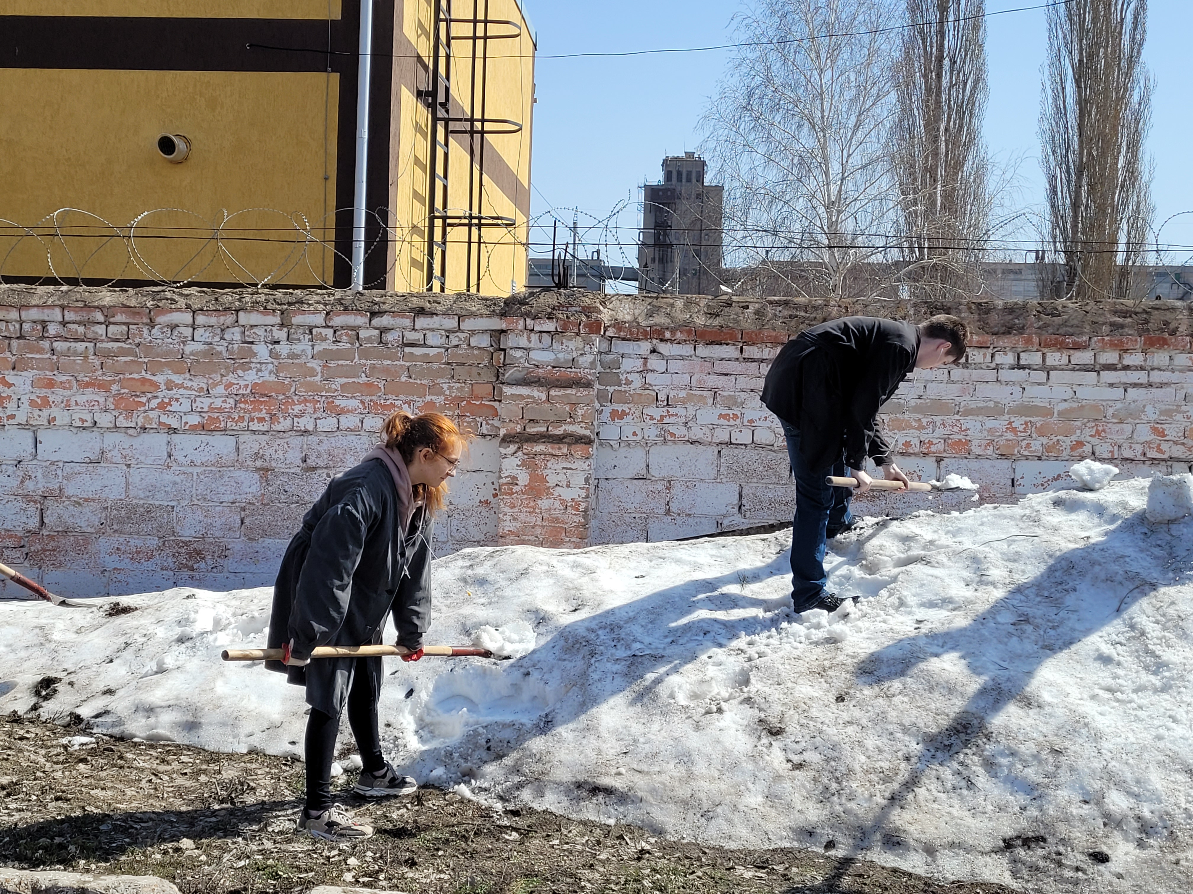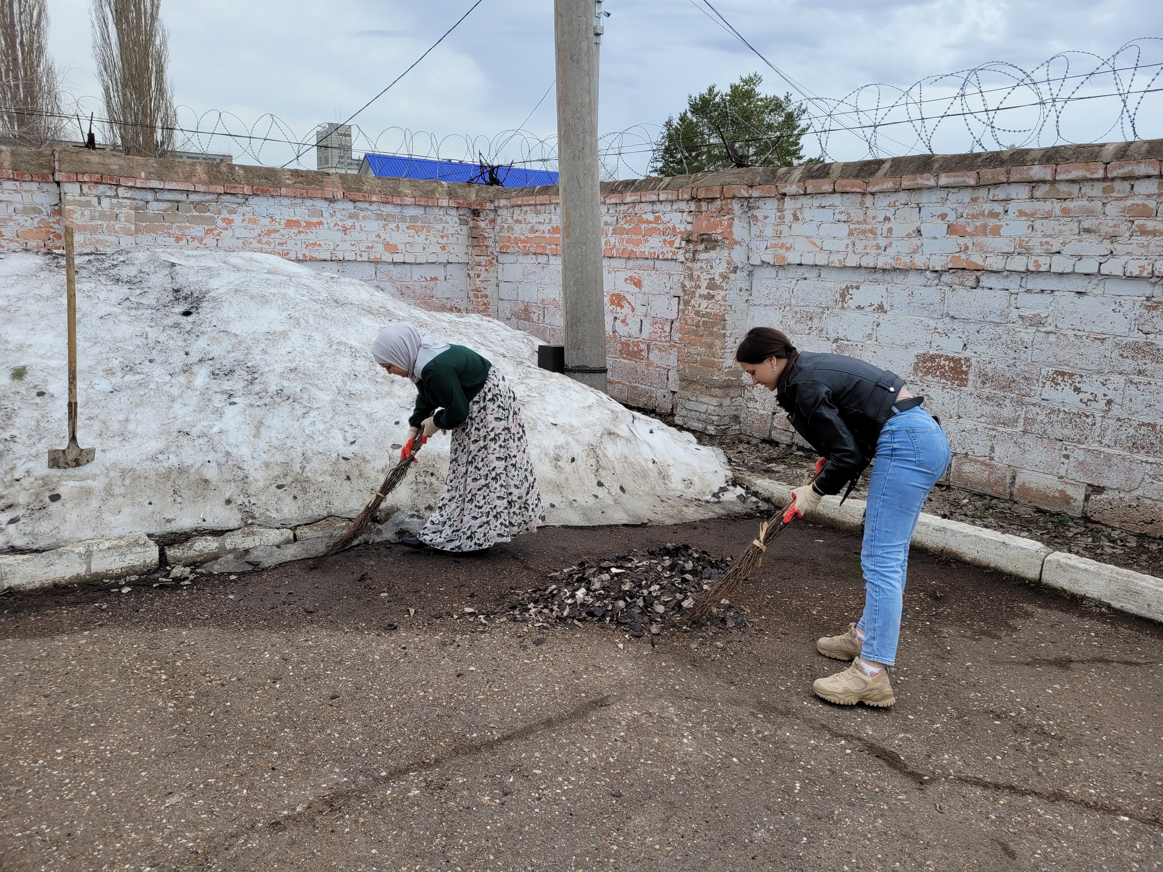 В ходе уборки территория учреждения была очищена от прошлогодней травы и листьев, раскиданы остатки снега. Двор естественнонаучного факультета и прилегающая к нему территория заметно преобразились. \