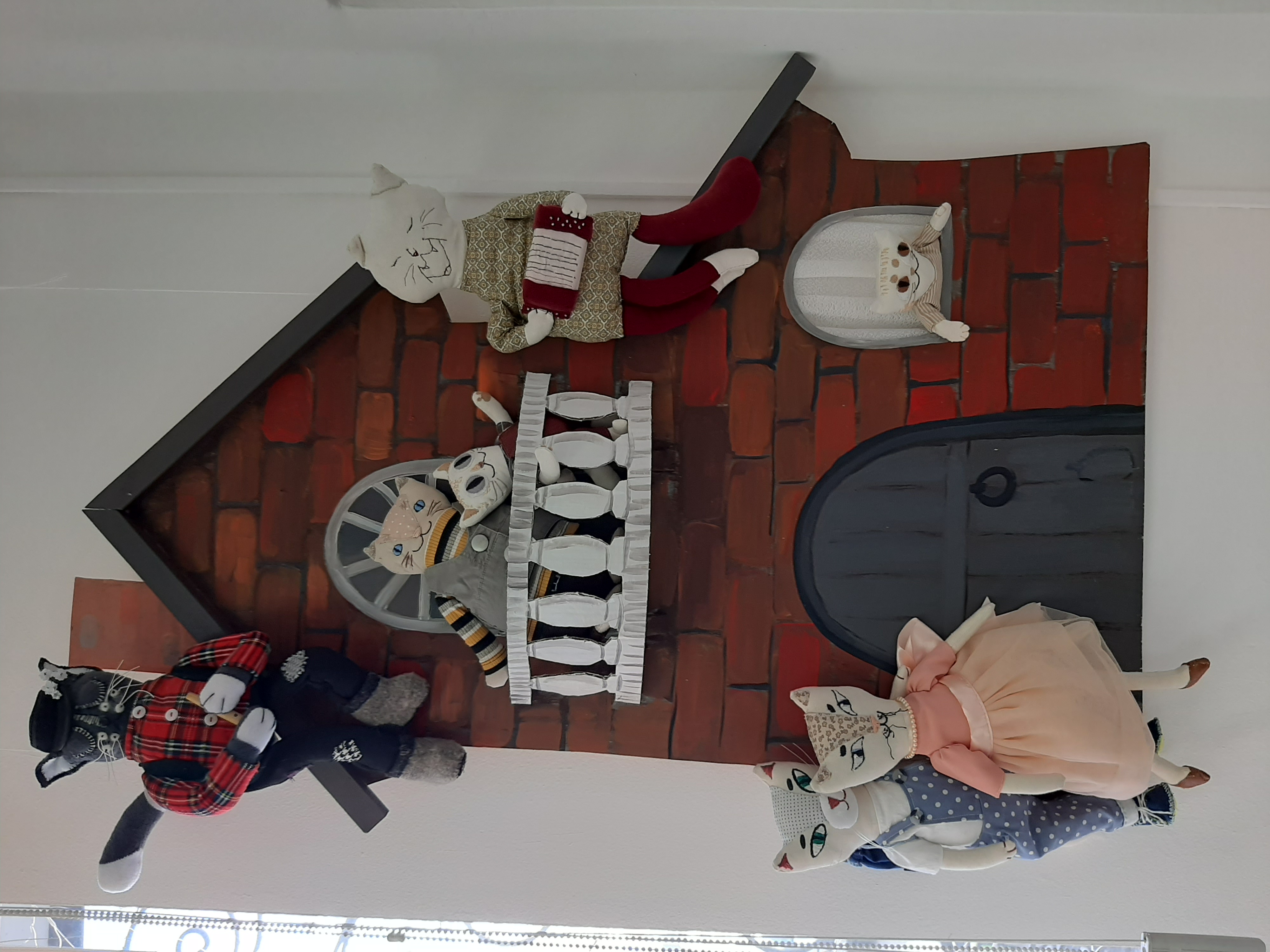 Яркая, весёлая, озорная экспозиция включила в себя лучшие работы из городов России и посвящена нашим пушистым друзьям – домочадцам - котам и кошкам, с которыми связано много добрых историй, вызывающих улыбку и свет в наших сердцах, любопытные, ласковые, игривые и вольные кошки, и каждая из них вызывает искренние чувства восторга и умиления. Среди них рисунки, мягкие игрушки, керамика, бумажные скульптуры, войлока и многое другое.