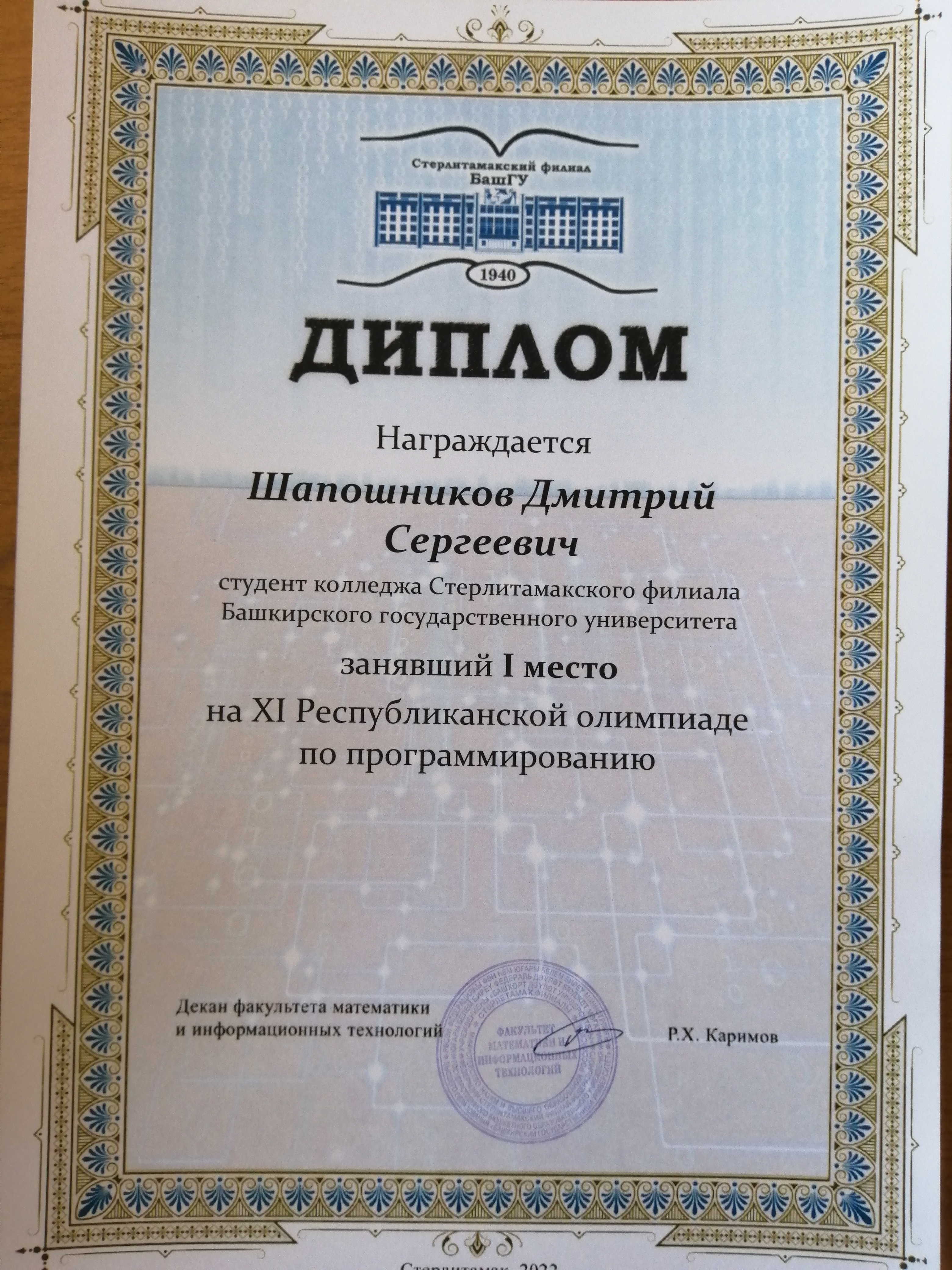 Студент группы 4ИСП11 Дмитрий Шапошников стал победителем среди студентов, представляющих различные колледжи Республики Башкортостан.