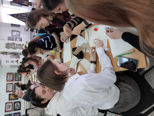 14 апреля 2022 г. прошел интересный мастер-класс в картинной галерее о вторичной переработке ненужных вещей и материалов со студентами по специальности «Преподавание в начальных классах». Студентам показали, как использовать старую газету и ненужную бумагу (фантики, чеки, этикетки). Красивую работу можно выполнить не только из цветной или белой бумаги, но и применяя обычную газету. Это самый доступный материал для рукоделия, который поможет развить моторику для детей и фантазию для взрослых.