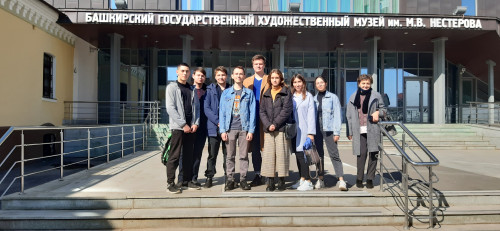 После в одном из старейших музеев России - Башкирском государственном художественном музее имени М.В. Нестерова - вниманию студентов предлагалась первая выставка из перспективного выставочного проекта «Эпосы, легенды, сказания в произведениях художников Башкортостана», посвящённого Году культурного наследия народов России. В экспозиции — произведения художников, широко известных за пределами Башкортостана и России, а также уникальные экспонаты декоративного творчества башкир (они представлены в витрине в фойе музея). Все произведения являются собственностью Башкирского государственного художественного музея им. М.В. Нестерова.