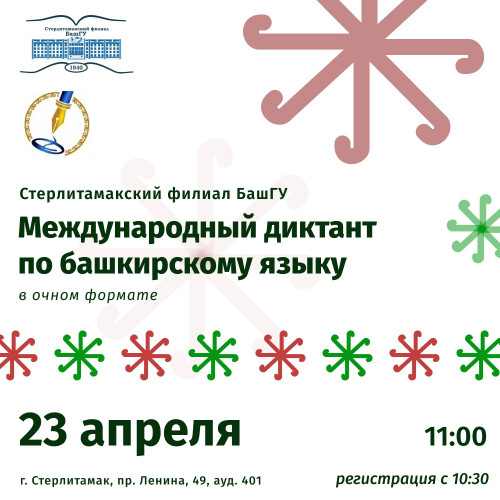 Очной площадкой для проведения диктанта станет и Стерлитамакский филиал БашГУ. Принять участие могут все желающие, свободно владеющие башкирским языком.