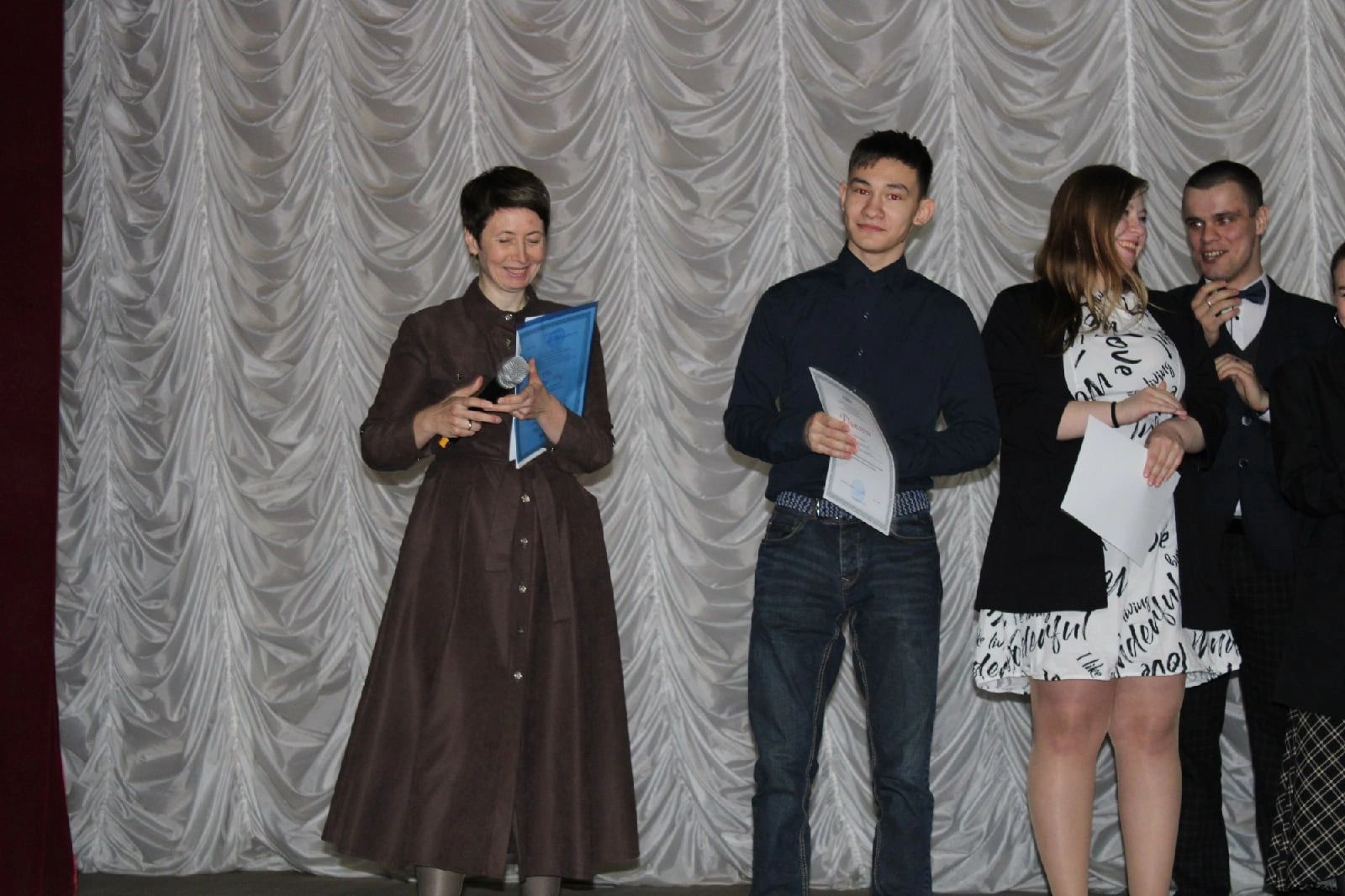 Все, кто был на мероприятии, получили музыкальный подарок: Екатерина Исакова и импровизированный хор из участников конкурса исполнили песни В. Цоя.