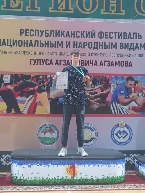 17.09.2022 года студент первого курса специальности 40.02.01 "Право и организация социального обеспечения" Максим Шеин принял участие в «Республиканском фестивале по национальным и народным видам спорта, посвященном памяти Гулуса Агзамовича Агзамова» и занял почетное I место в соревнованиях по армрестлингу среди юношей до 18 лет.