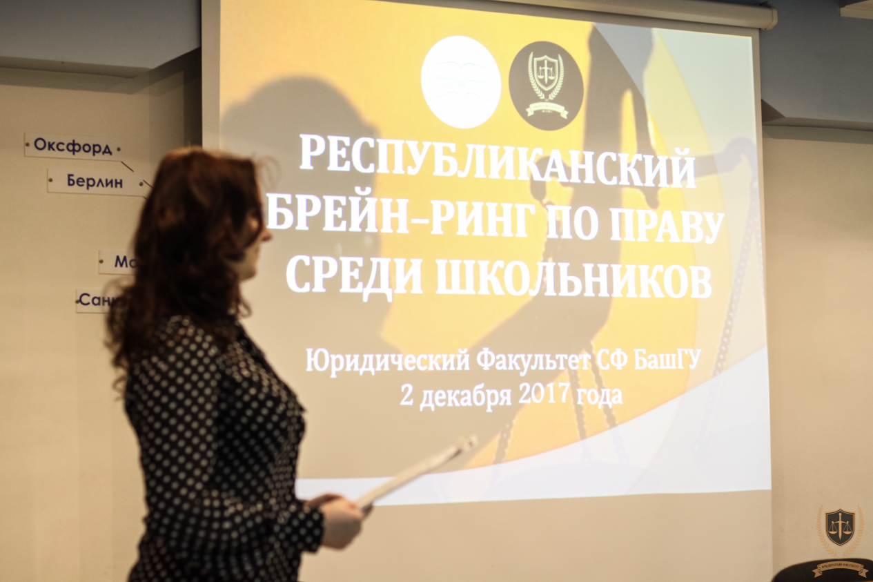 2 декабря 2017 г. на базе юридического факультета в рамках профориентационной работы под руководством доцента кафедры теории и истории государства и права Эльвиры Рамилевны Черновой состоялся Республиканский правовой брейн-ринг, приуроченный Всероссийскому дню правовой помощи детям и Дню юриста. В мероприятии приняли участие учащиеся школ городов и районов республики.