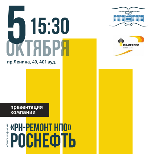 5 октября состоится презентация компании Уфимский филиал ООО «РН-Ремонт НПО» РОСНЕФТЬ.