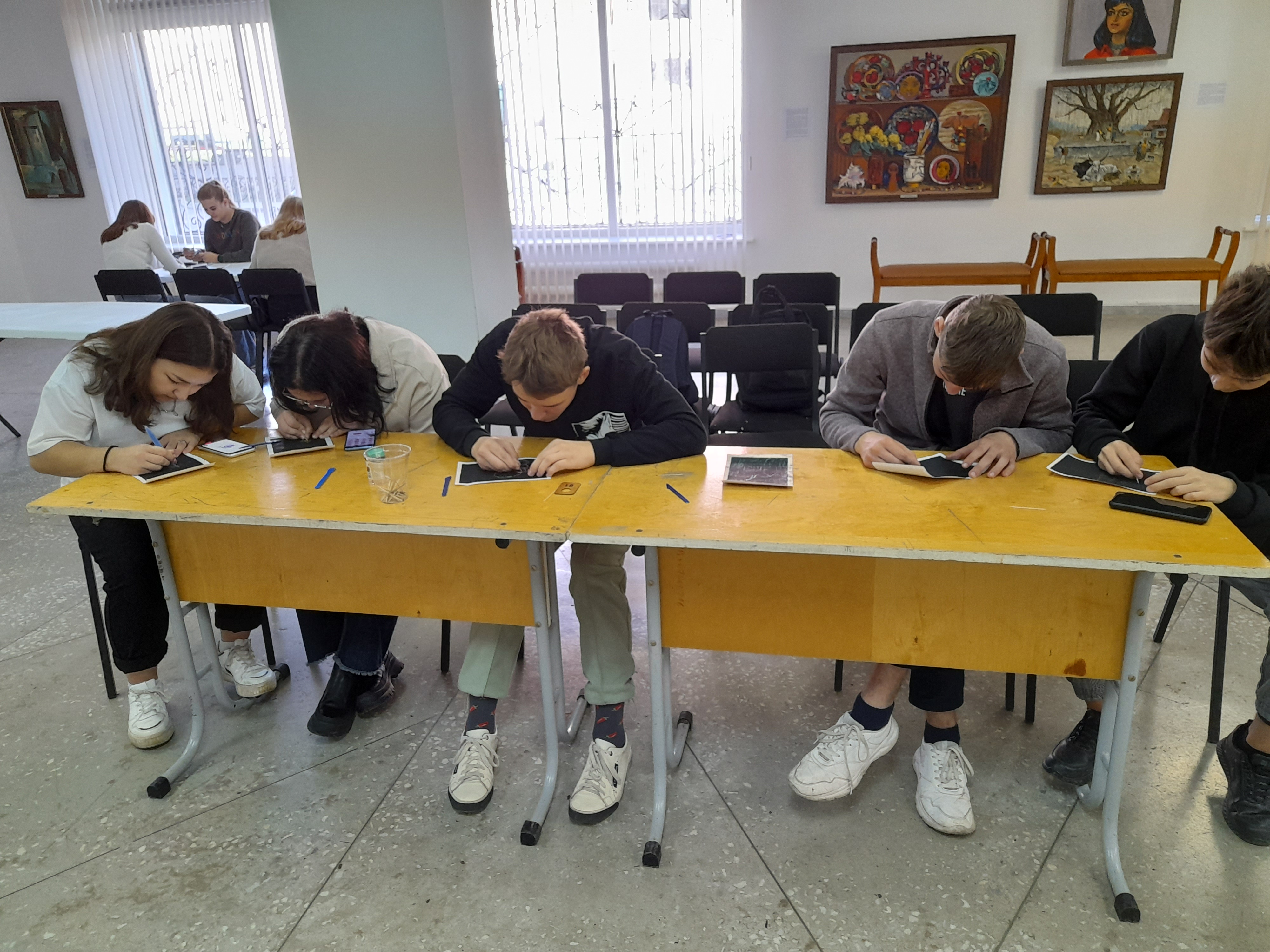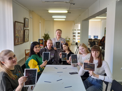 Особенном увлекательным для ребят стал мастер-класс по созданию работы в технике «граттаж» («граттаж»–способ выполнения рисунка путём процарапывания пером или острым инструментом бумаги или картона, залитых тушью). И с этим заданием ребята справились на отлично!