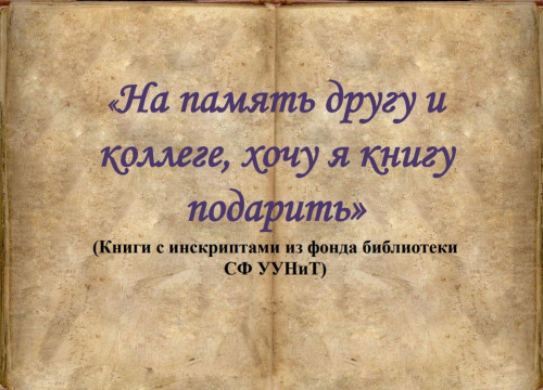 «На память другу и коллеге, хочу я книгу подарить» (Книги с инскриптами из фонда библиотеки СФ УУНиТ)
