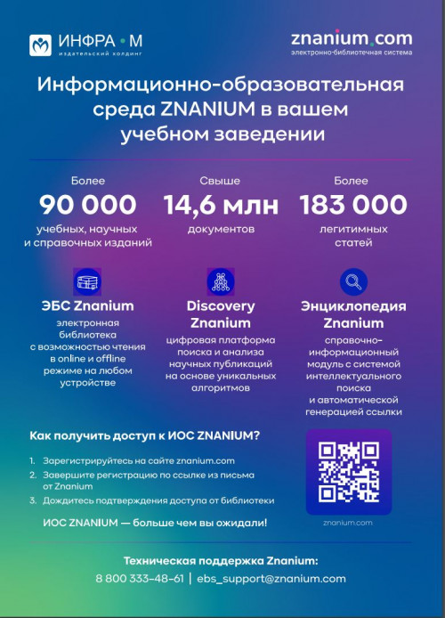 https://znanium.com/help/manualsВидеоинструкции: https://znanium.com/help/video-manualsЧастозадаваемые вопросы: https://znanium.com/help/faq