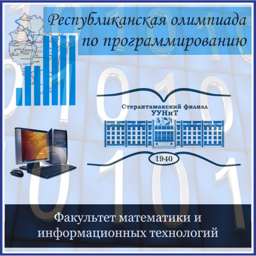 Приглашаем Вас принять участие в XII Республиканской олимпиаде по программированию, организуемой Стерлитамакским филиалом Уфимского университета науки и технологий.