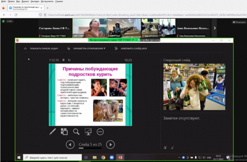 Студенты группы НДО41 и кураторы академических групп факультета педагогики и психологии 23 ноября приняли участие в семинаре в формате онлайн по пропаганде здорового образа жизни. Организатор – Управление по молодежной политике Уфимского университета науки и технологий.