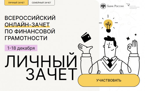 Всероссийский онлайн-зачет по финансовой грамотности организовал Банк России совместно с АНО «Агентство стратегических инициатив по продвижению новых проектов». Принять участие в зачете и проверить, насколько хорошо он ориентируется в финансовых вопросах, может любой желающий, начиная со школьников младших классов. Как сообщили организаторы, в этом году можно сдать не только личный, но и семейный зачет.
