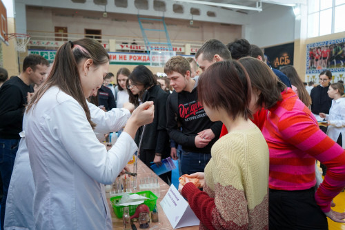 После регистрации участники мероприятия последовали в спортивный зал, где для них факультетами были подготовлены интерактивные и информационные площадки: