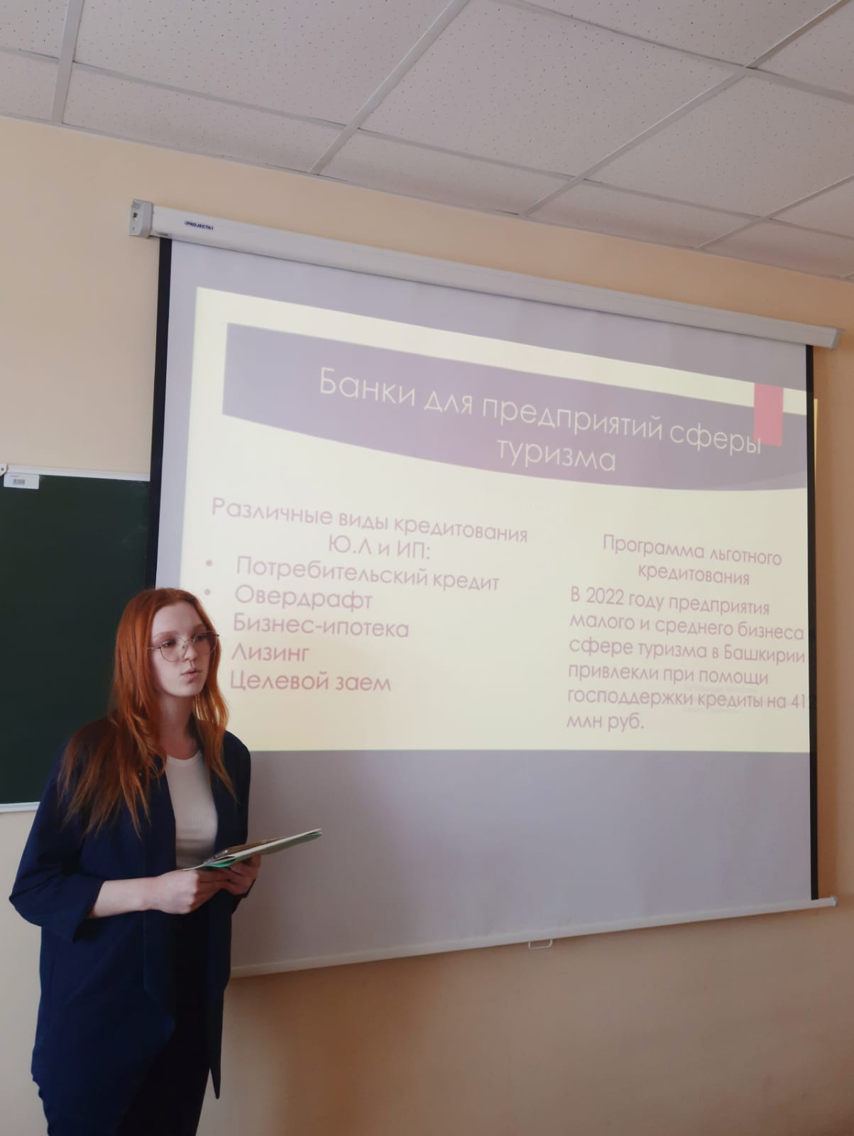 Студентами специальности 38.02.07 «Банковское дело» были озвучены новые программы лояльности для туристов; какие существуют банковские карты (кредитные и дебетовые) с начислением баллов, кешбека на путешествия; информация о кредитовании турагентств на территории Республики Башкортостан.