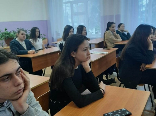 Аделина познакомила с направлениями подготовки, реализуемыми на факультете, с формами, сроками обучения, рассказала о студенческой жизни, об условиях проживания в общежитии, а также раздала наглядно-раздаточные материалы «Приемная кампания 2023».