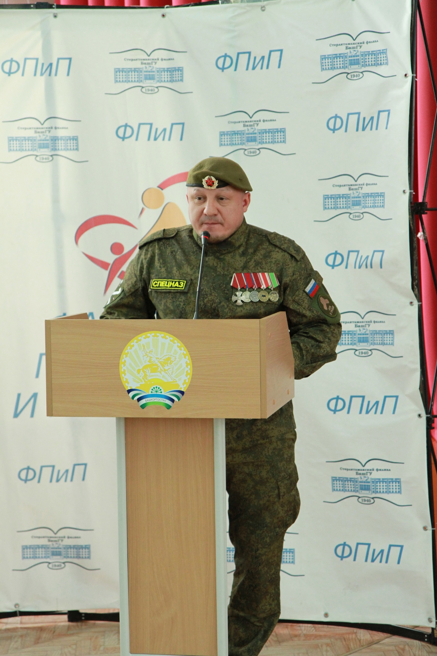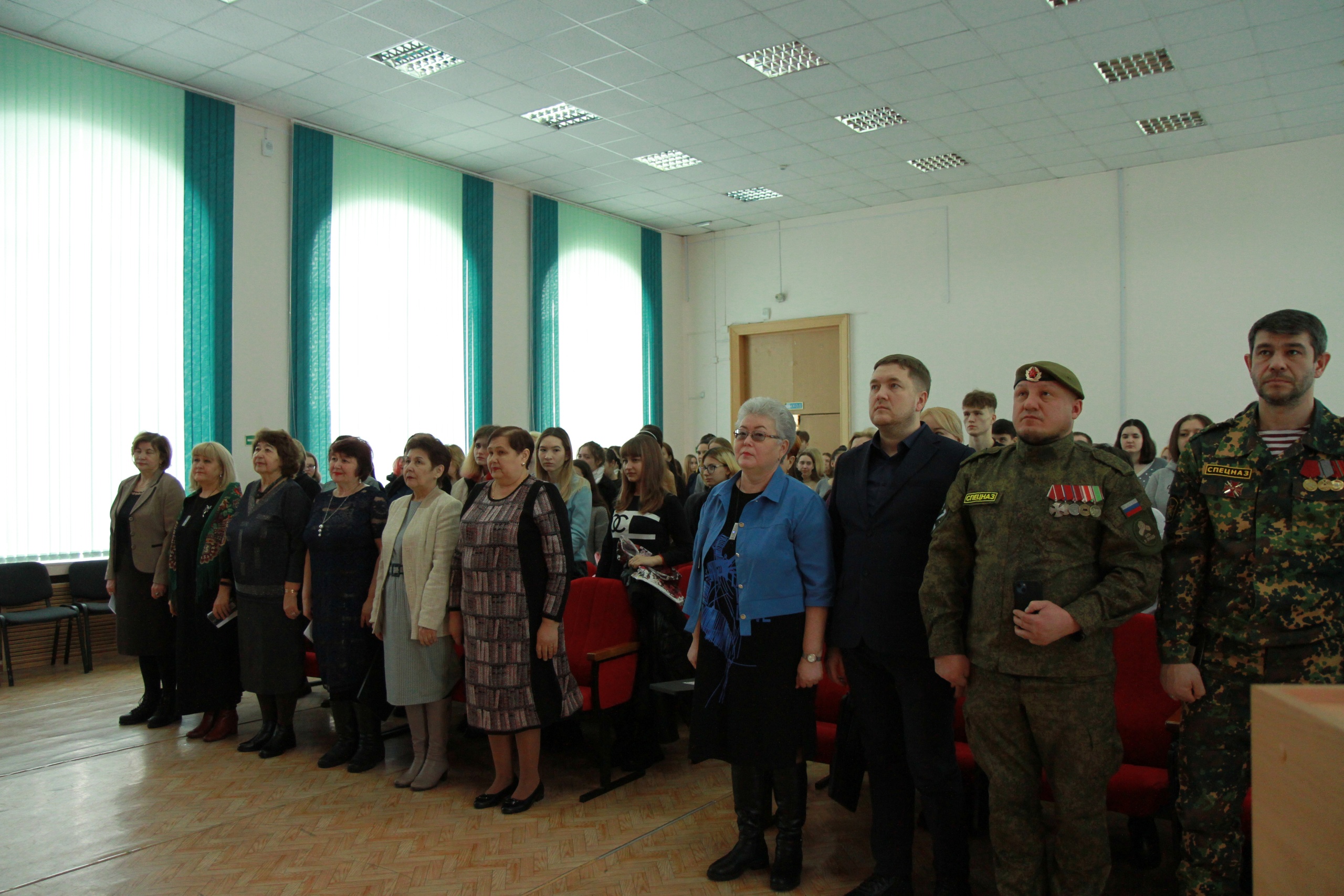 На мероприятии присутствовали почетные гости: заместитель директора по научной работе, кандидат исторических наук, доцент Алёшин Павел Николаевич; председатель Общественной организации Союз участников вооружённого конфликта в Чеченской Республике «Набат» Маняпов Ильдус Фавилевич; ветеран боевых действий в Чеченской Республике и СВО Пашковский Константин Александрович; ветеран боевых действий в Чеченской Республике Гиниятуллин Альберт Ринатович. Также зрителями стали студенты и преподаватели колледжей г. Стерлитамака, участниками – хореографический ансамбль «Веселинка» Дворца Пионеров (рук. – Поскребышева Ю.Ю.).