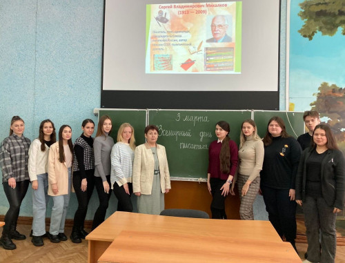 Всемирный день писателя отметили и на факультете педагогики и психологии. Студенты группы НДО21 под руководством доцента Ишкильдиной З.К. организовали видеоэкскурсию в мир творчества Сергея Михалкова, известного российского писателя, автора Гимнов СССР и Российской Федерации. Экскурсоводами выступили Ахметшина А., Батыршина Н., Карпова Ю.