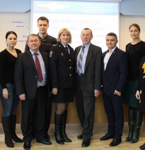 В работе круглого стола приняли участие заведующий кафедрой уголовного права и процесса СФ БашГУ д.ю.н., профессор Аминев Фарит Гизарович, начальник следственного управления СУ МВД России по г. Стерлитамак, полковник юстиции Сафаргалеев Марат Валерьевич, зам. начальника следственного отдела СУ МВД РФ по Стерлитамакскому району, подполковник юстиции Семейникова Оксана Владимировна, начальник ЭКО УМВД РФ по г. Стерлитамак, подполковник полиции Краснов Максим Анатольевич, адвокат БРКА Ильясов Рашид Гайнуллович, магистранты, студенты юридического факультета.