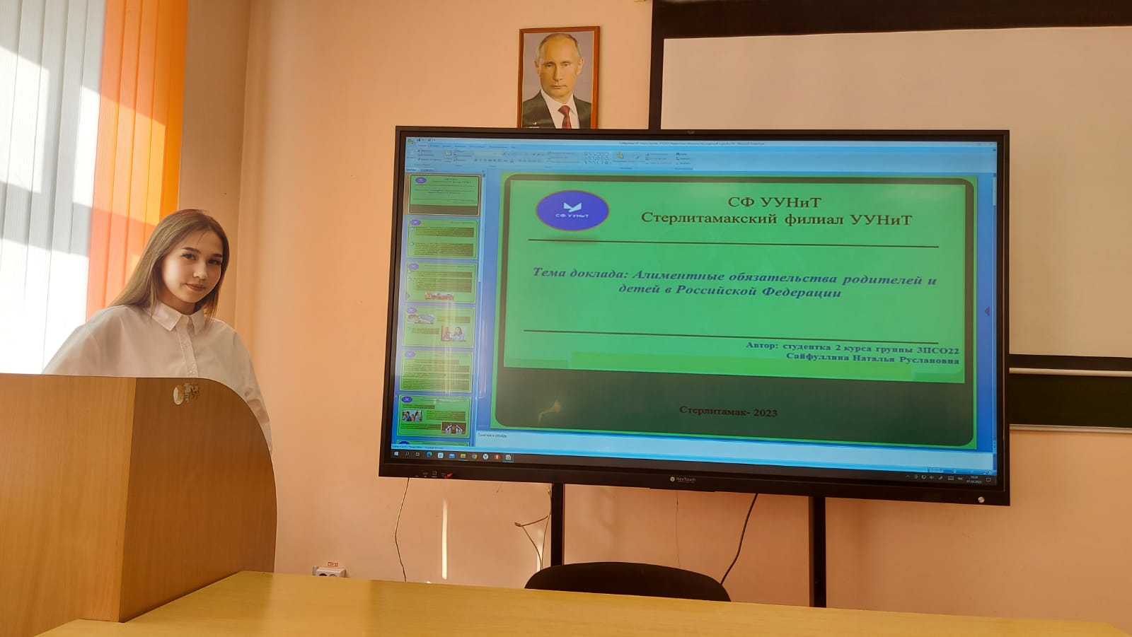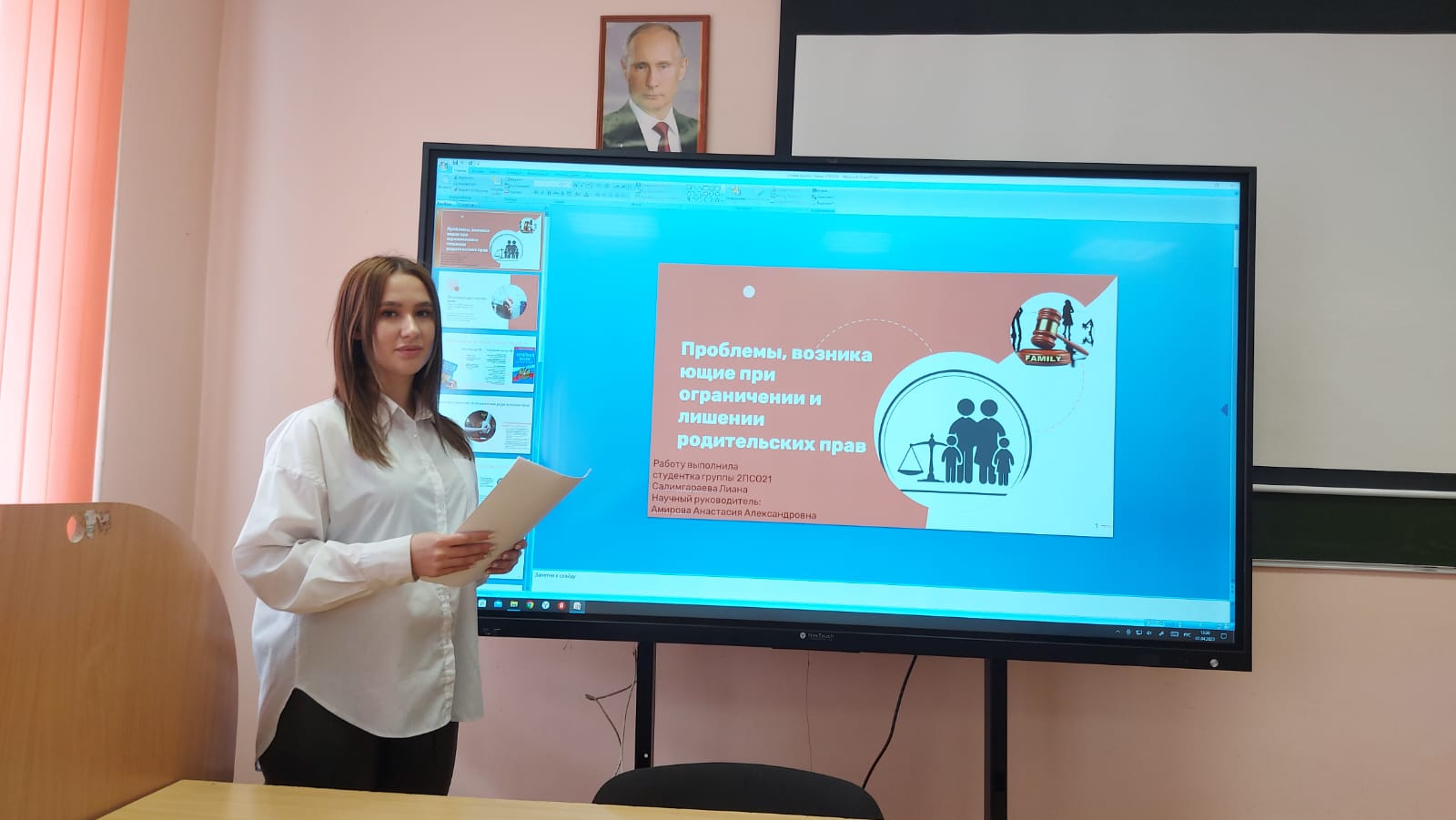 7 апреля 2023 года в колледже СФ УУНиТ в рамках традиционного научного фестиваля «Молодежь. Прогресс. Наука» состоялась секция на тему «Актуальные проблемы семейного законодательства», организаторами который являются преподаватель высшей категории Романова А.П., преподаватель Федорова Т.А.