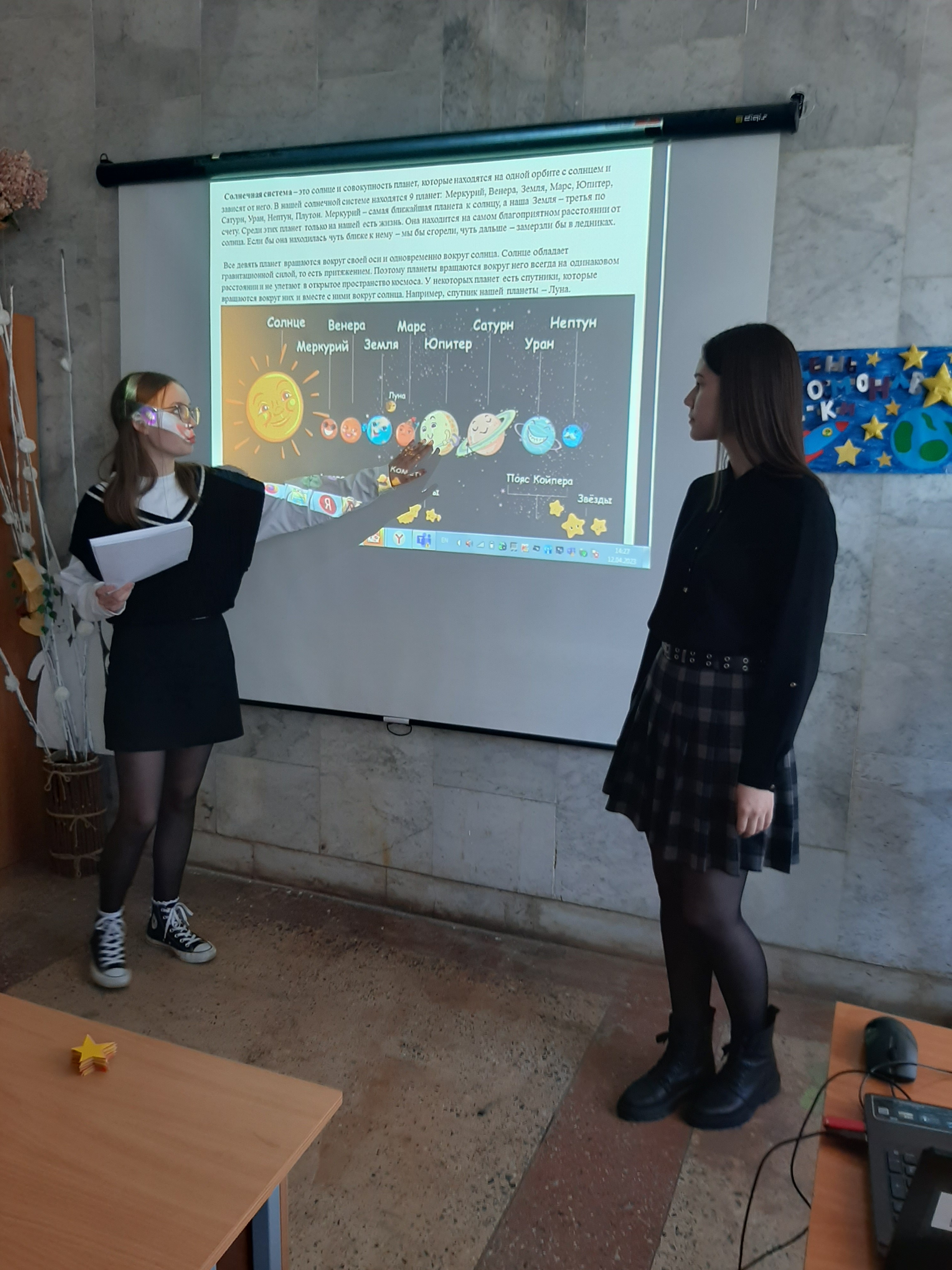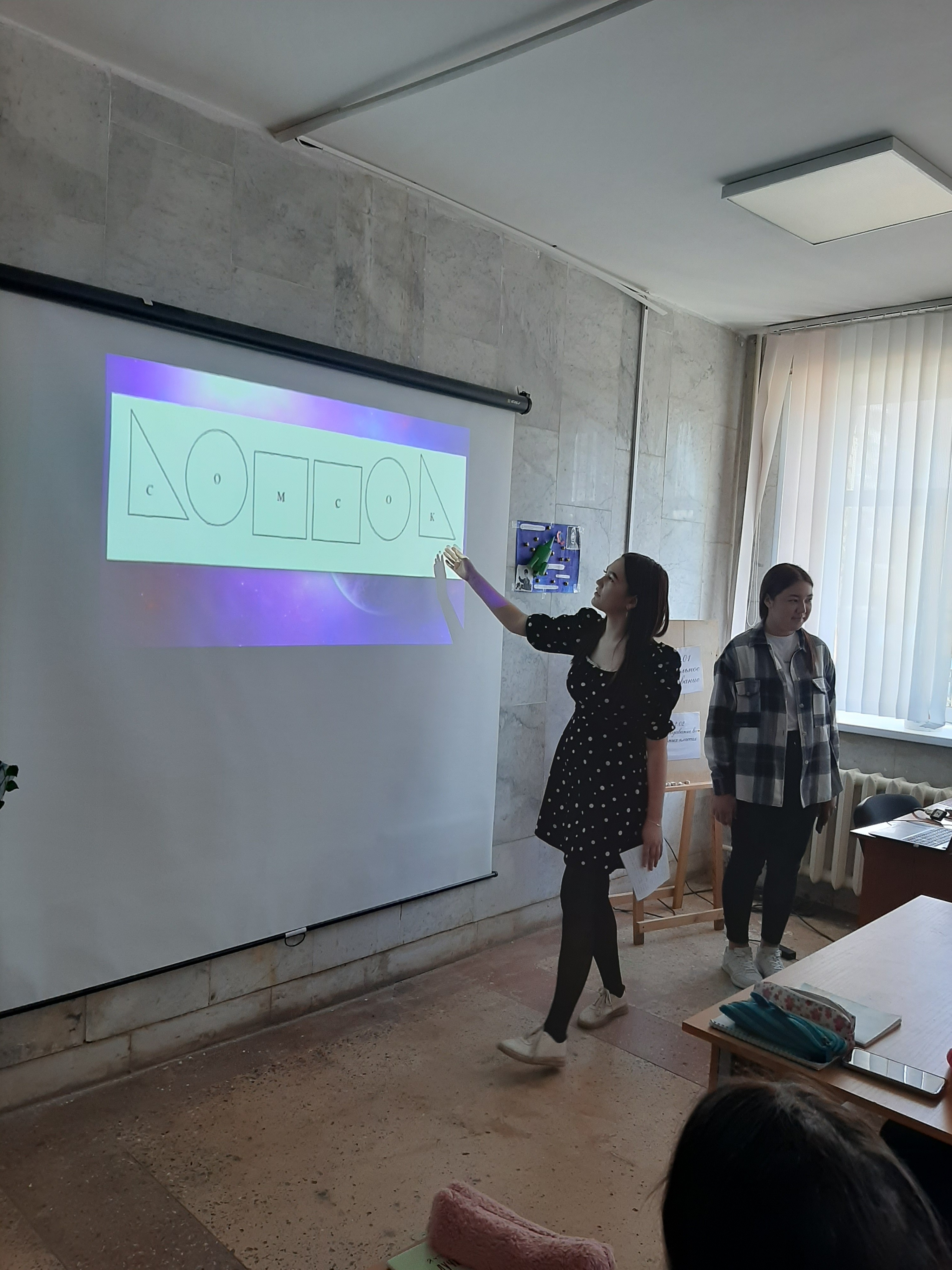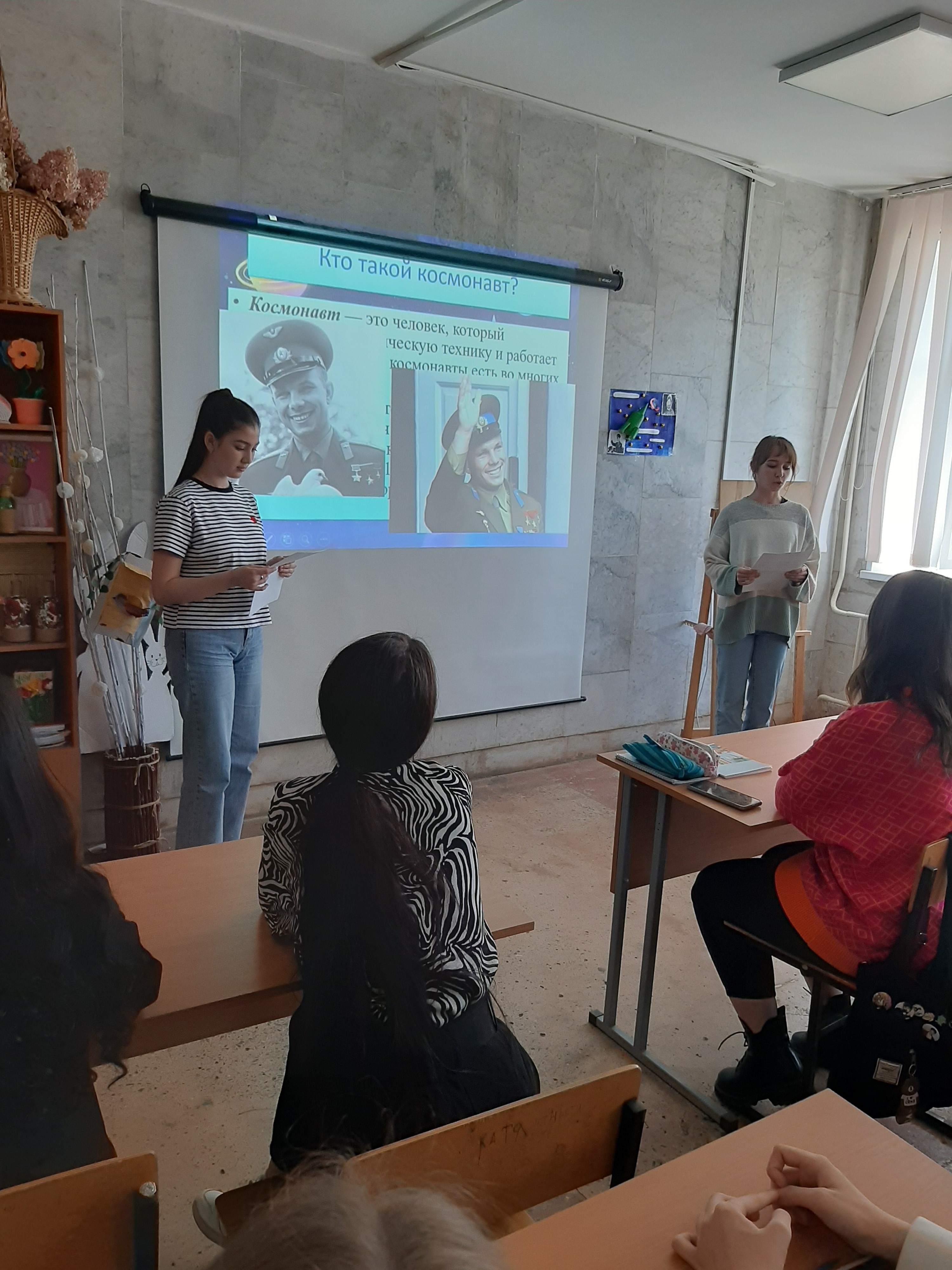Студенты с большим интересом посмотрели кадры из кинохроники о полете Ю. Гагарина в космос, кадры из художественного фильма «Время первых» о выходе А. Леонова в открытый космос. Также были проведены викторины о космосе «Знаете ли вы...?» и познавательное мероприятие «Человек. Вселенная. Космос» с красочной презентацией о развитии космонавтики в нашей стране.