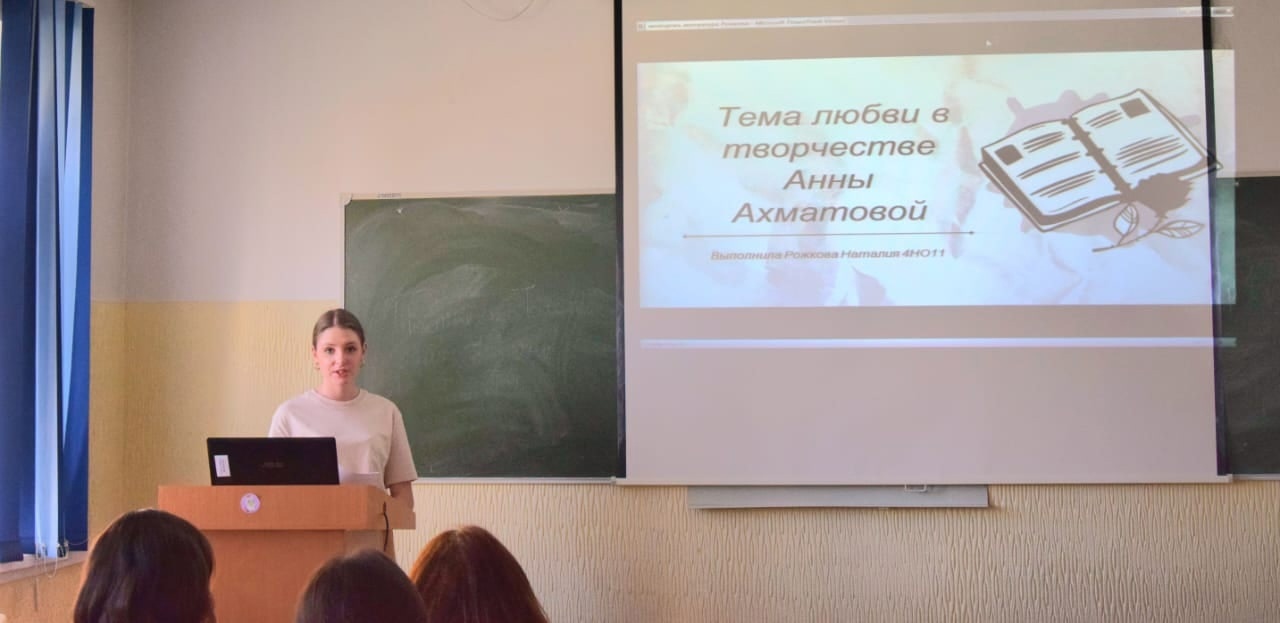 1 место – Шкирдова Марина (4ДО11) Тема: "Заглавие книг А. Ахматовой как метатекст";
