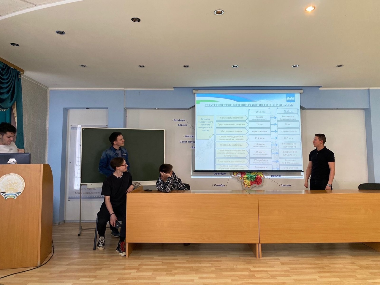 В рамках деловой игры будущий кандидат в депутаты представительного органа местного самоуправления Каримов Булат представил аудитории – «избирателям» свою предвыборную программу кандидата в депутаты Совета городского округа город Стерлитамак Республики Башкортостан. В предвыборной кампании в качестве доверенных лиц кандидата выступили Максутов Булат, Мухаметов Марат, Сагитов Ильнур, Саитов Дмитрий. Студентами был проанализирован текущий потенциал нашего городского округа г. Стерлитамак, раскрыты возможности и угрозы, сильные и слабые стороны в дальнейшем развитии нашего города. В предвыборной программе кандидатом выработаны предложения, рекомендации, стратегическое видение в целях создания комфортной городской среды и обеспечения высокого уровня жизни населения. Кандидатом в депутаты в ходе конструктивной беседы были даны ответы на все интересующие вопросы избирателей.