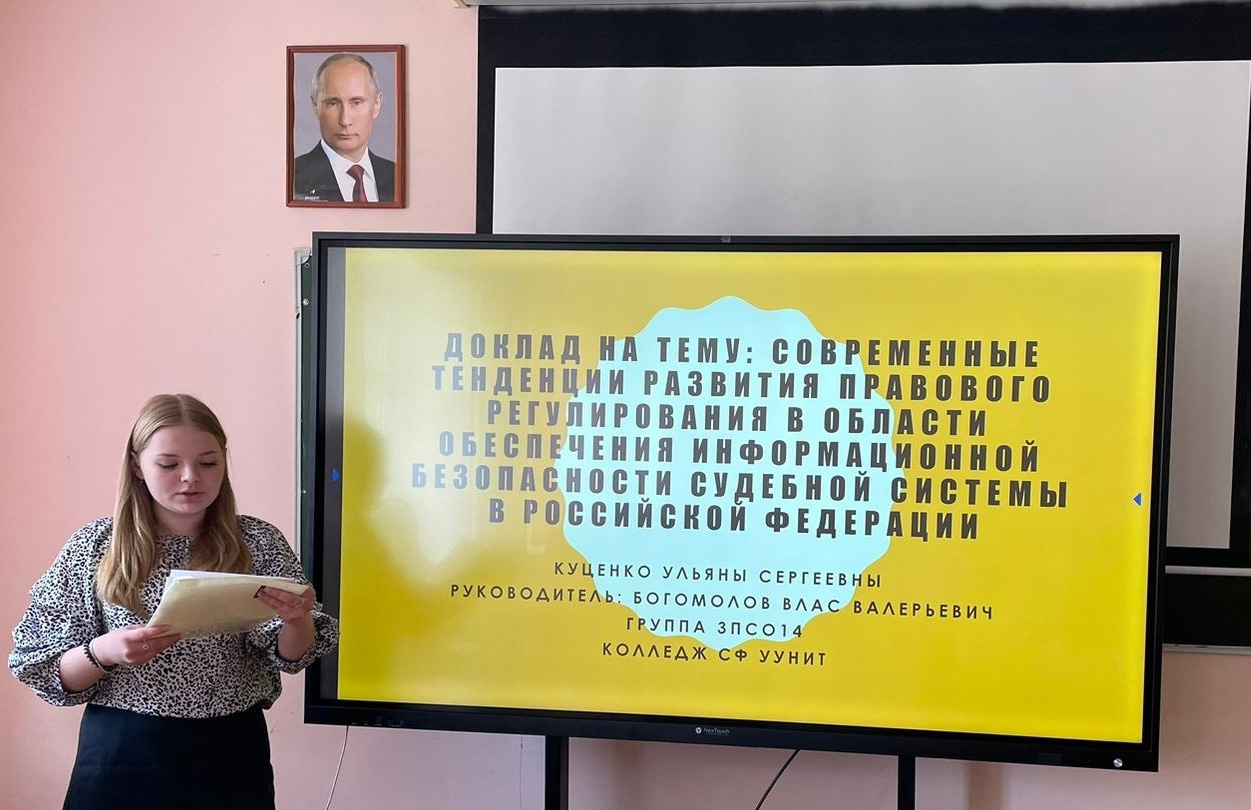 27.04.2023 в колледже СФ УУНиТ в рамках ежегодного фестиваля «Молодежь. Прогресс. Наука.» прошло заседание секции «Информационные технологии и информационная безопасность в государственных органах» под руководством преподавателей юридических дисциплин Абдрахимовой Л.Л., Амировой А.А., Рогожкиной Р.Г., Чугуновой Э.А.