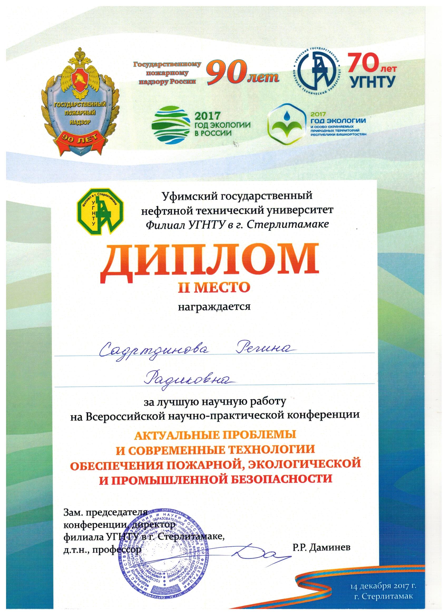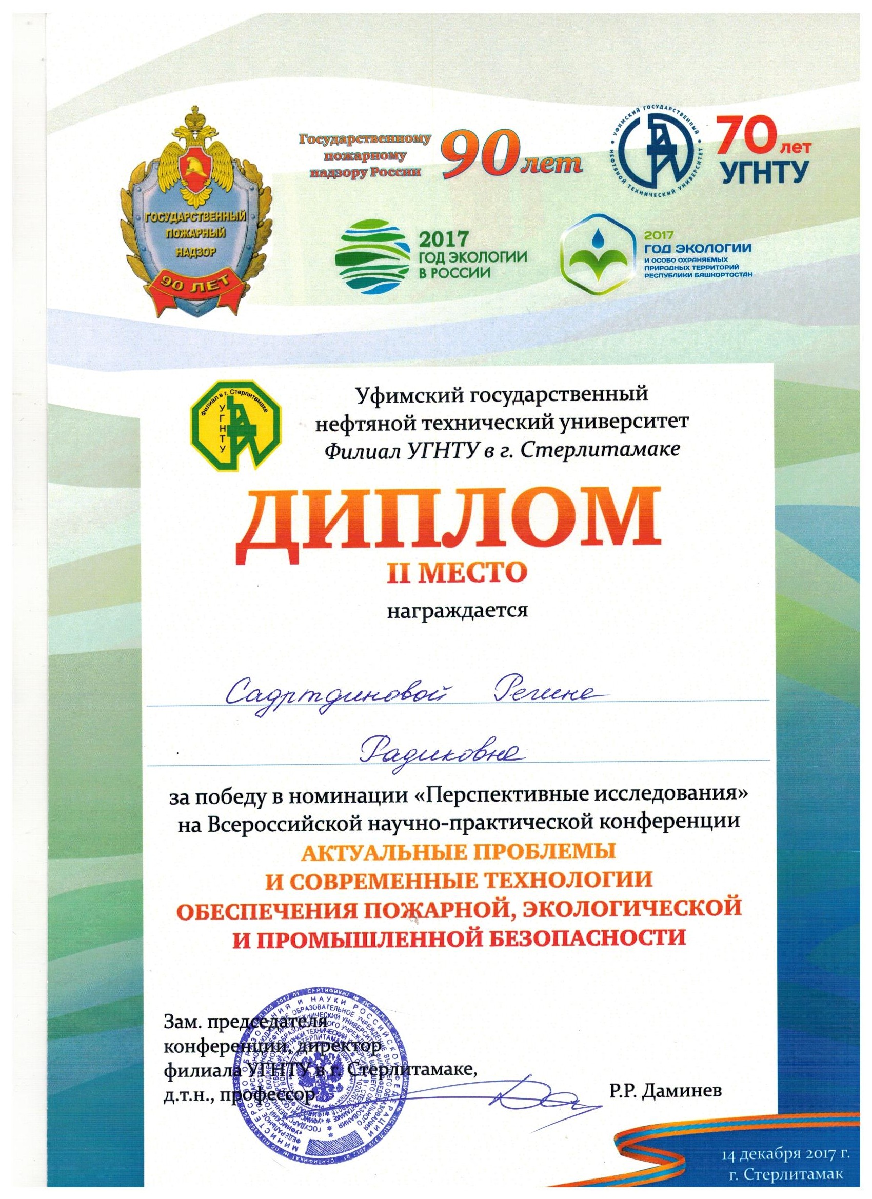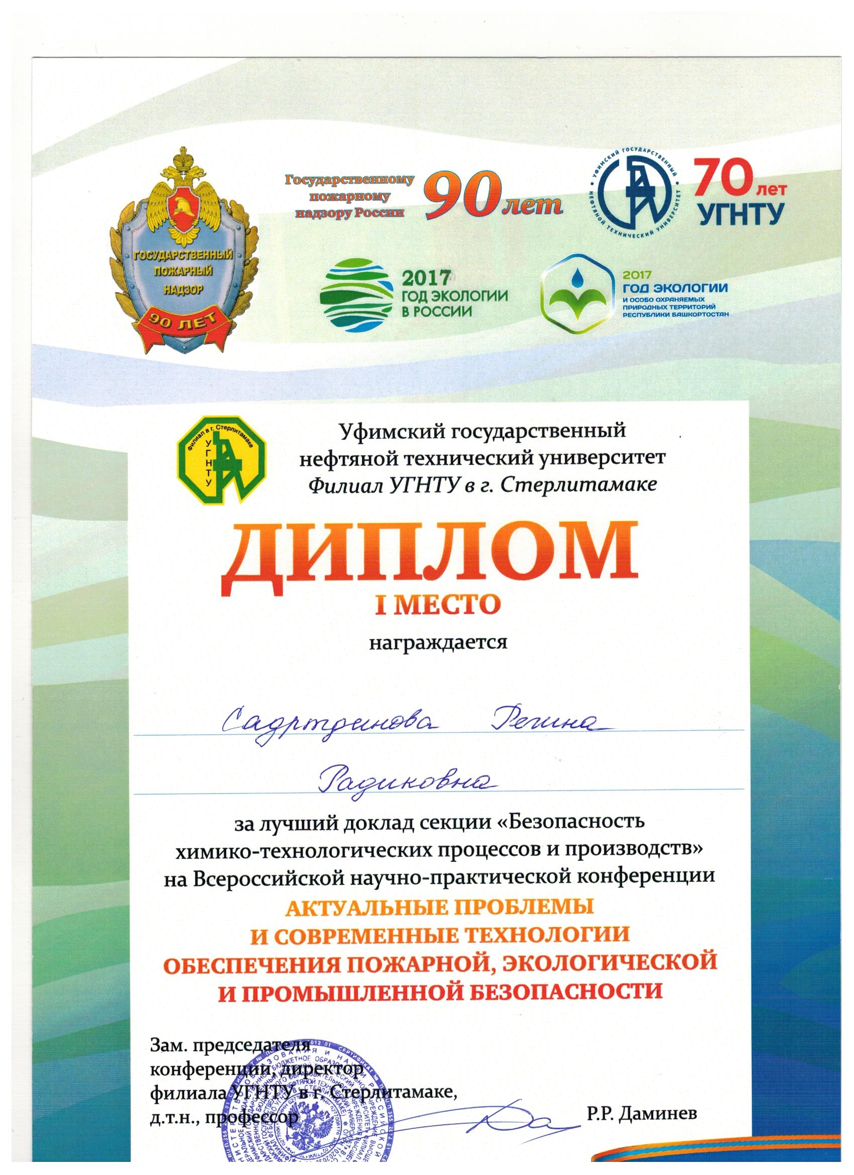 14 декабря 2017 г. в Уфимском государственном нефтяном техническом университете, филиал в г. Стерлитамаке была проведена Всероссийская научно-практическая конференция «Актуальные проблемы и современные технологии обеспечения пожарной, экологической и промышленной безопасности», посвященная 90-летию Государственному пожарному надзору России. На данном мероприятии приняли участие и студенты Стерлитамакского филиала Башкирского Государственного университета.