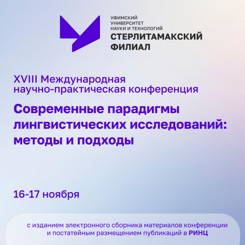 Кафедра германских языков филологического факультета СФ УУНиТ приглашает принять участие в XVIII Международной научно-практической конференции «Современные парадигмы лингвистических исследований: методы и подходы», которая состоится 16-17 ноября 2023 года.