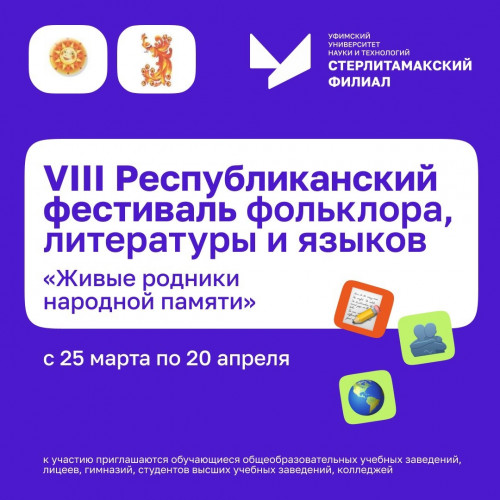 С 25 марта по 20 апреля 2024 года пройдет ежегодный VIII Республиканский фестиваль фольклора, литературы и языков "Живые родники народной памяти".