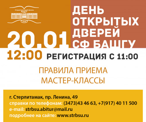 20 января 2018 г. в Стерлитамакском филиале БашГУ состоится День открытых дверей.