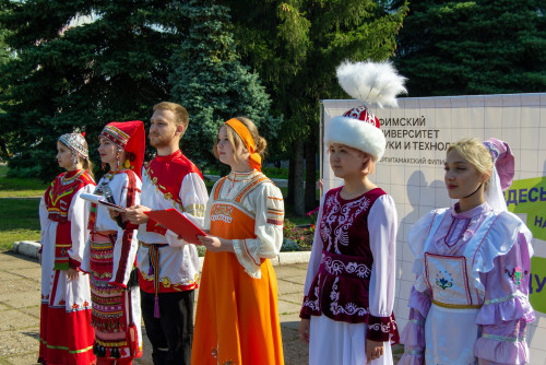 Торжественное мероприятие продолжилось на площадке перед главным корпусом и было адресовано первокурсникам, выбравшим СФ УУНиТ для получения высшего образования.