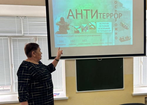 Студенты повторили правила дорожного движения, правила пожарной безопасности. Особое внимание было уделено проблемам антитеррористической защищенности, студенты принимали активное участие в обсуждении вопросов профилактики терроризма и экстремизма. Были продемонстрированы слайды, отражающие правила техники безопасности как в вузе во время занятий, так и на улице, и в общественных местах. Куратор группы Гизатуллина К. Х.