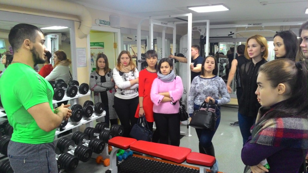 Студентам провели небольшую экскурсию по залам, познакомили с ведущими тренерами фитнес-центра, а также рассказали о предоставляемых услугах и видах занятий. Различные программы тренировок укрепят ваше здоровье и физическую форму, снимут напряжение и поднимут настроение!
