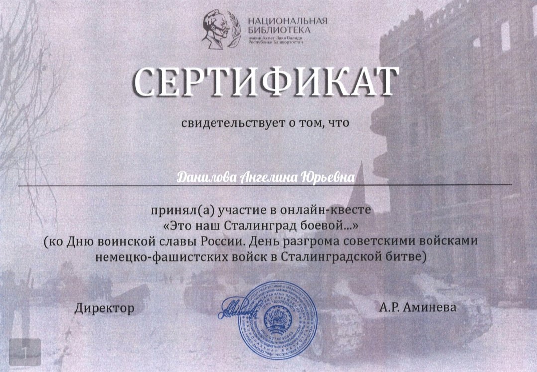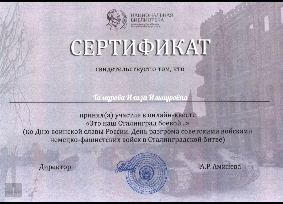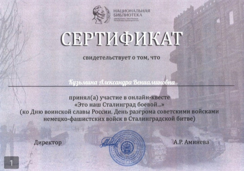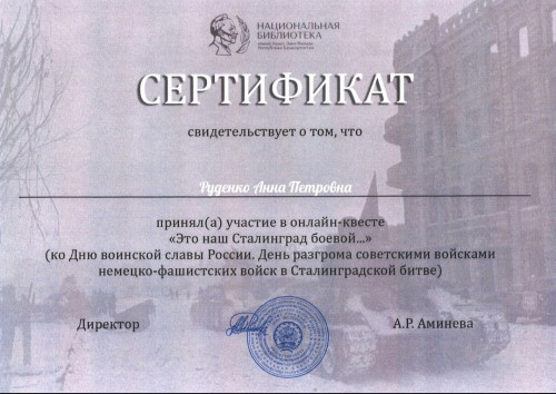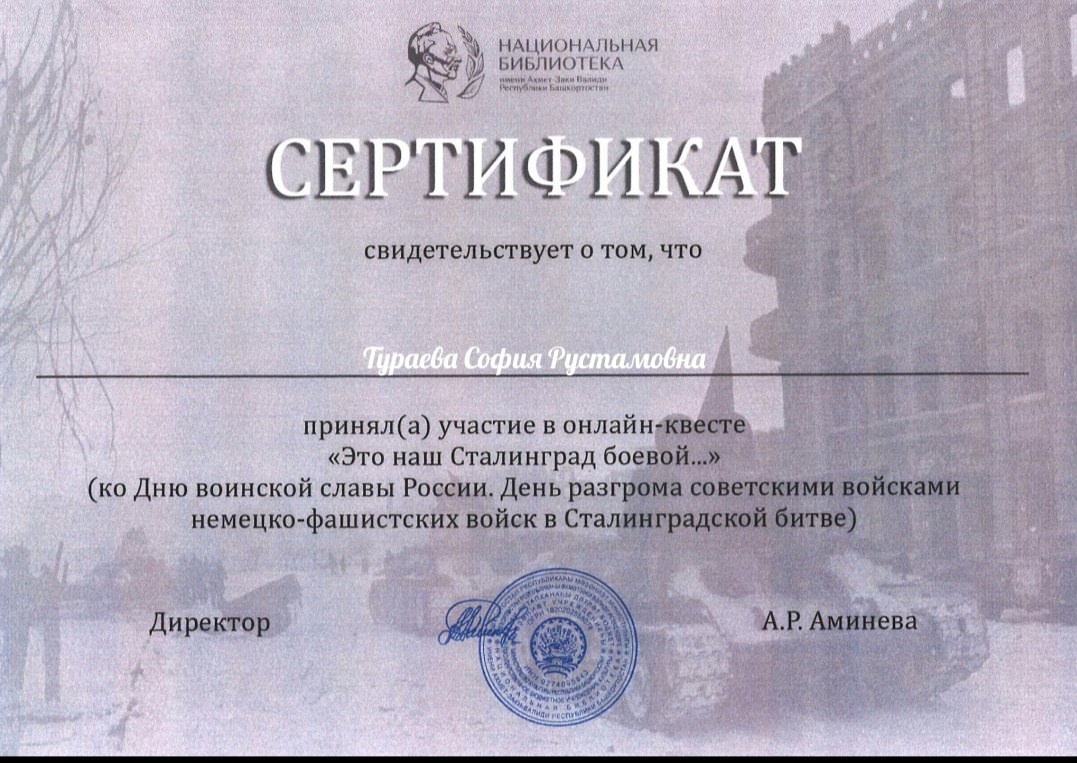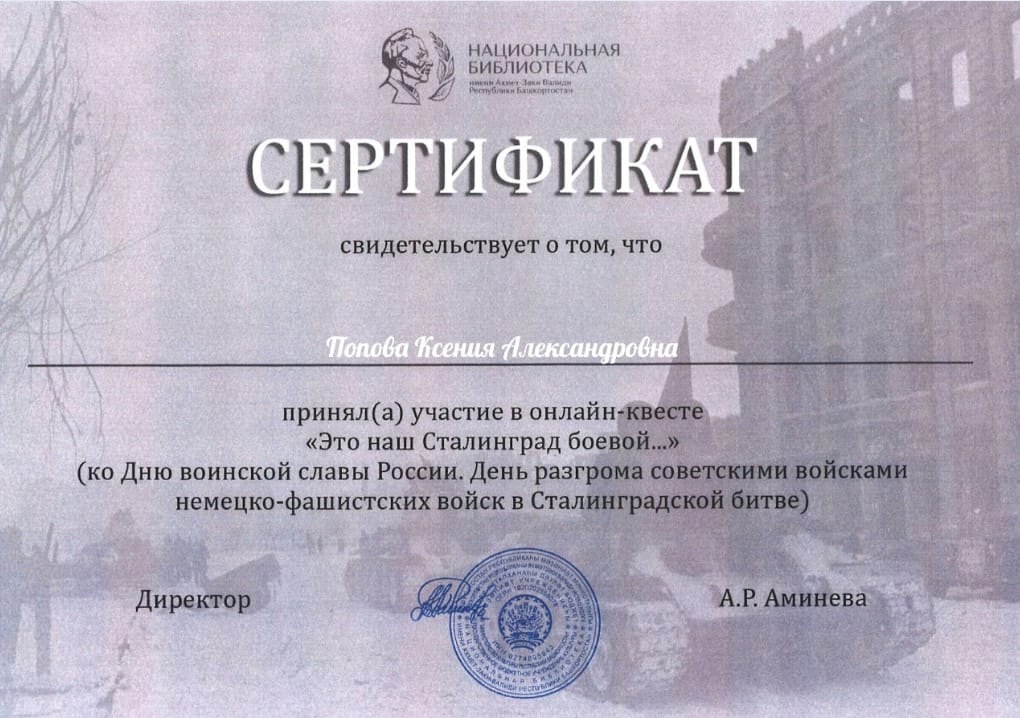 Студенты факультета педагогики и психологии приняли участие в онлайн-квесте «Это наш Сталинград боевой…», подготовленный к Дню воинской славы сотрудниками Национальной библиотеки имени Ахмет-Заки Валиди.