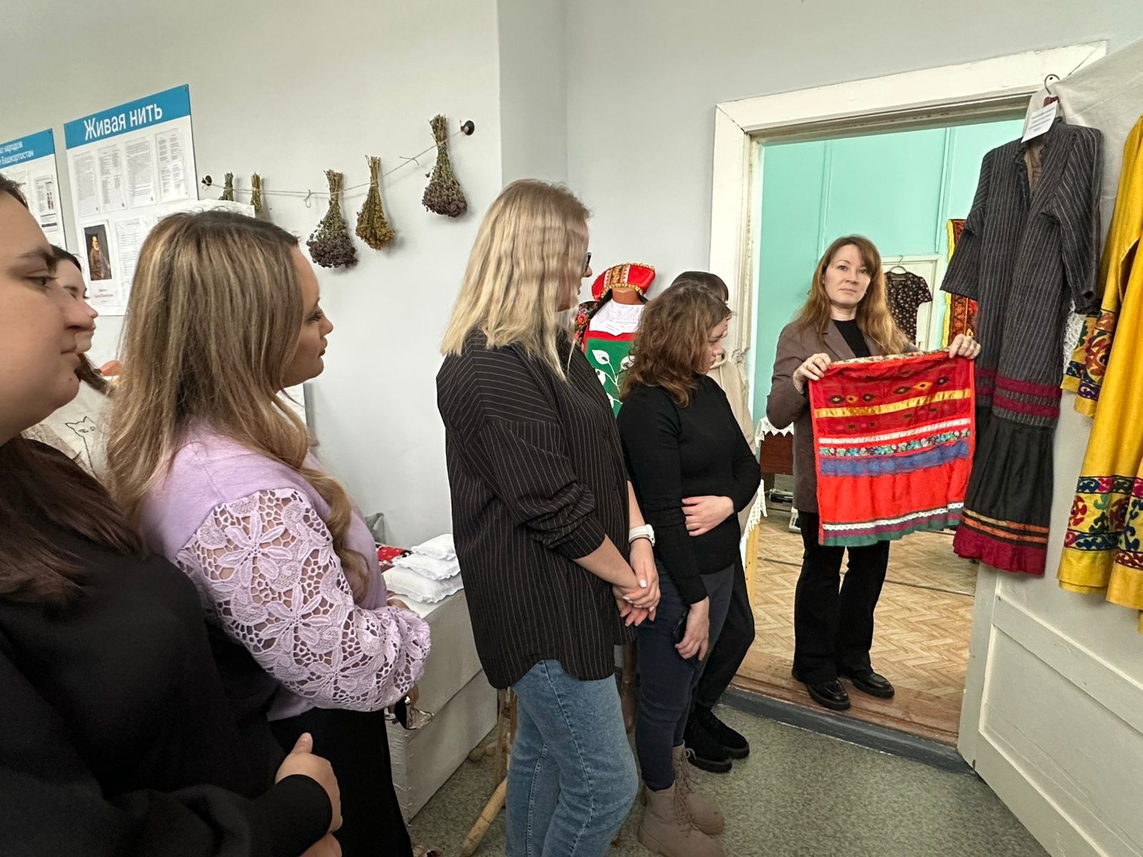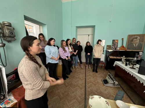 6 февраля Саттарова Л.С. в ходе экскурсии рассказала студентам 3 курса об истории здания, о ходе сбора экспонатов для музея, познакомила с культурой, бытом различных народов, населяющих нашу республику с опорой на представленные предметы в музейной экспозиции.