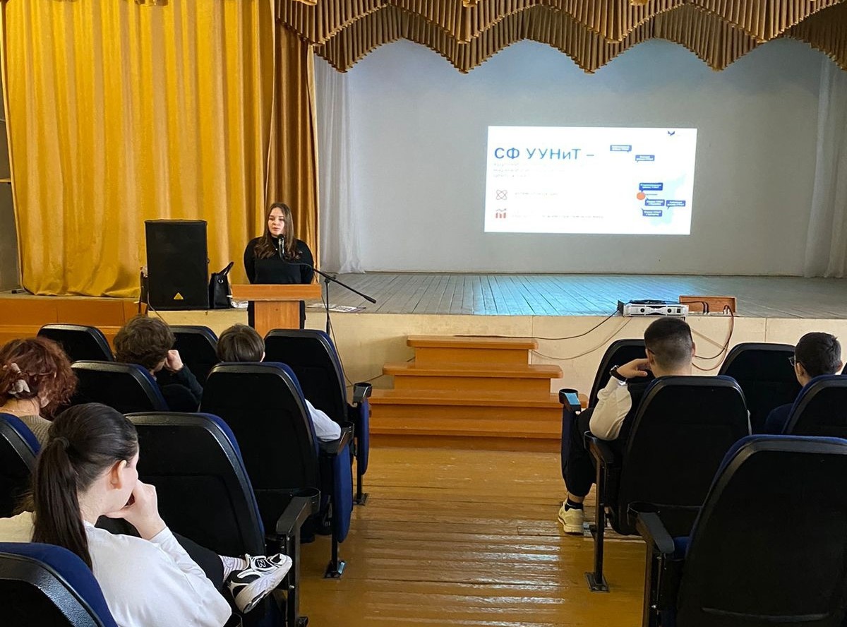 В рамках профориентационной работы 6 февраля делегация преподавателей СФ УУНиТ, в том числе и ассистент кафедры психолого-педагогического образования Иванова А.П. посетили школы города Мелеуз: МОБУ СОШ №1, МОБУ СОШ №4, МОБУ СОШ №5, МОБУ ООШ №7, МОБУ СОШ №8, МОБУ ГМО №1, МОБУ Лицей №6, МОБУ Гимназия №3, МОБУ Башкирская гимназия №9 им. Кинзи Арсланова.