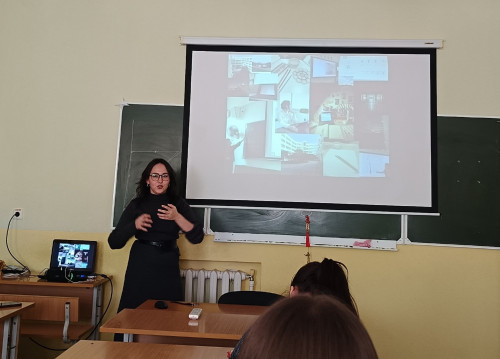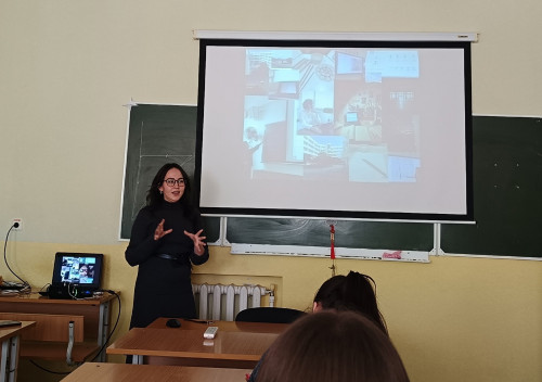 Перед студентами группы ППО31 и преподавателями выступила Мубинова Аделина, которая в 1 семестре 2024-2025 учебного года обучалась в городе Нанчань, провинции Цзянси, в Китае. Она рассказала об особенностях обучения, проживания, распорядке дня в вузах Китайской республики. Продемонстрировала видеофильм о национальных традициях и праздниках китайского народа.