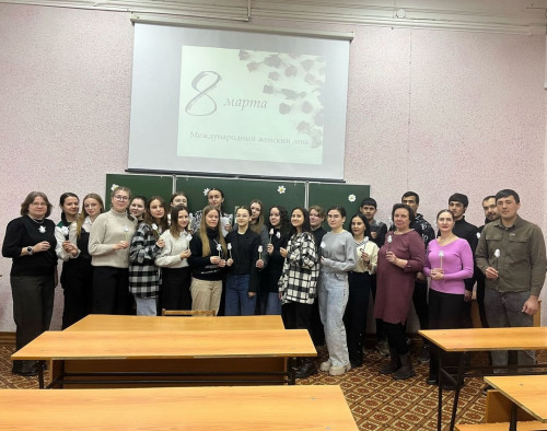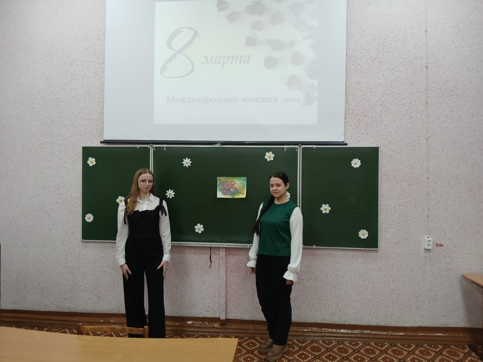 Панченко Дарья начали мероприятие с увлекательной истории о возникновении Международного женского дня, рассказав студентам о том, как важно помнить о заслугах женщин в обществе и их вклад в развитие культуры и науки.