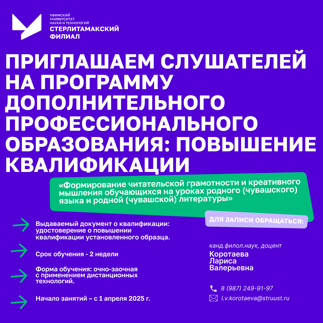 Начало занятий – с 01 апреля 2025 г.Для записи обращаться: ФИО руководителя/методиста: кандидат филологических наук, доцент Коротаева Л.В.