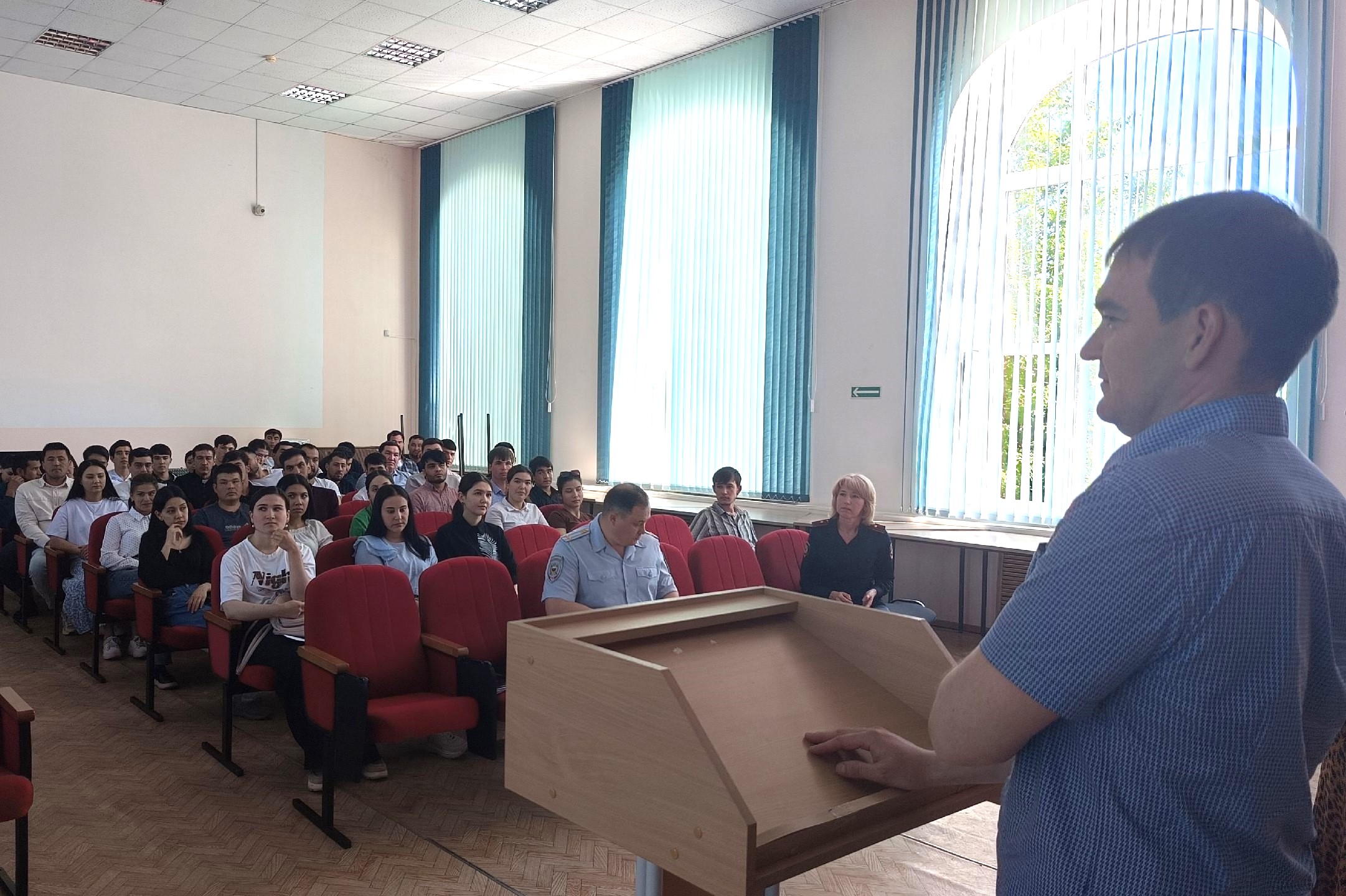 Подполковник Управления по вопросам миграции Халиков А.А. рассказал студентам о случаях мошенничества, совершаемых в отношении граждан, о способах противодействия ему.